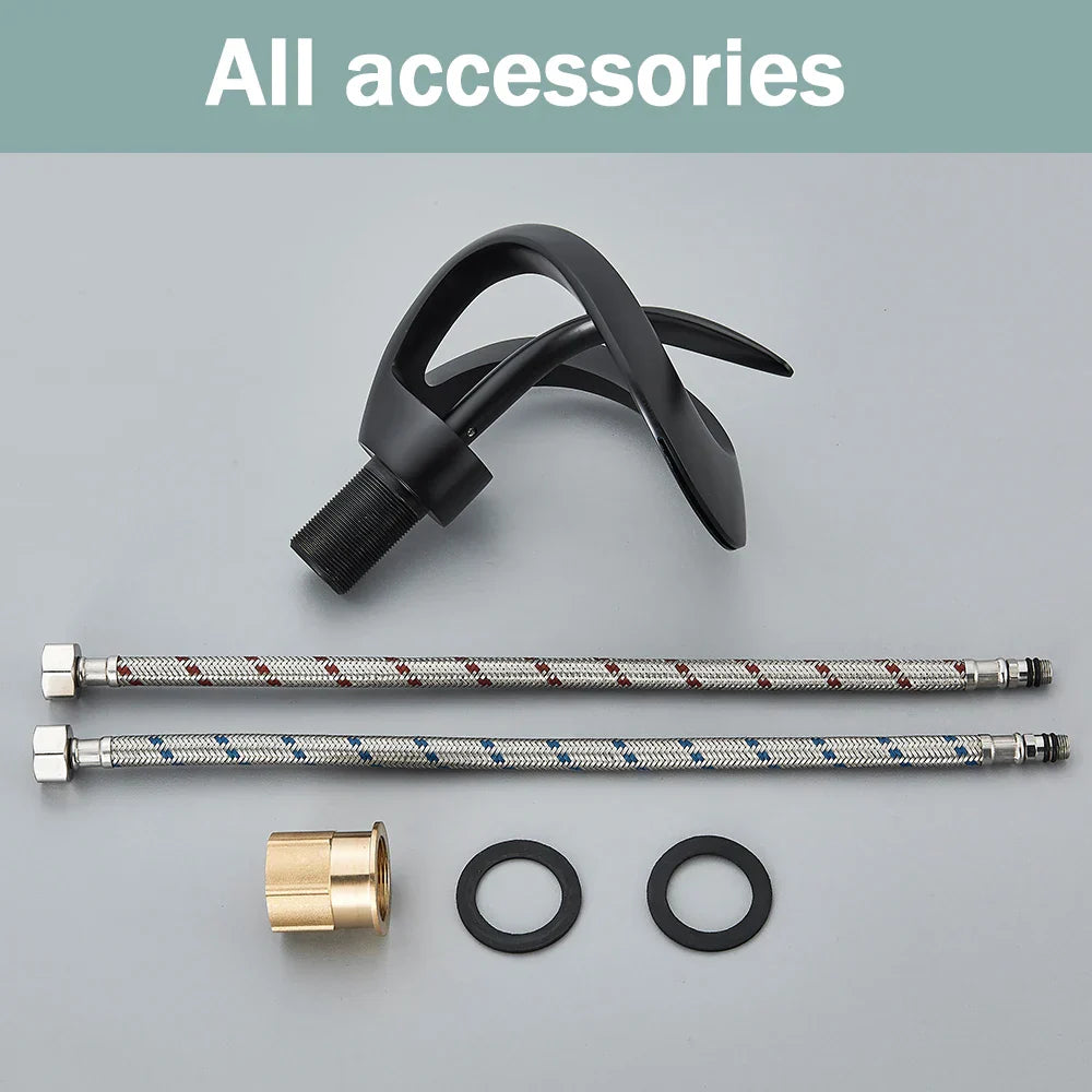 نقدم لكم صنبور حوض ديكوربيتس الأسود والرمادي بخلاط الشلال، إضافة عصرية وأنيقة لحمامكم. صُمم هذا الصنبور المُثبت على السطح ليجمع بين الأناقة والعملية، مما يُضفي لمسةً مميزة على حوضكم.