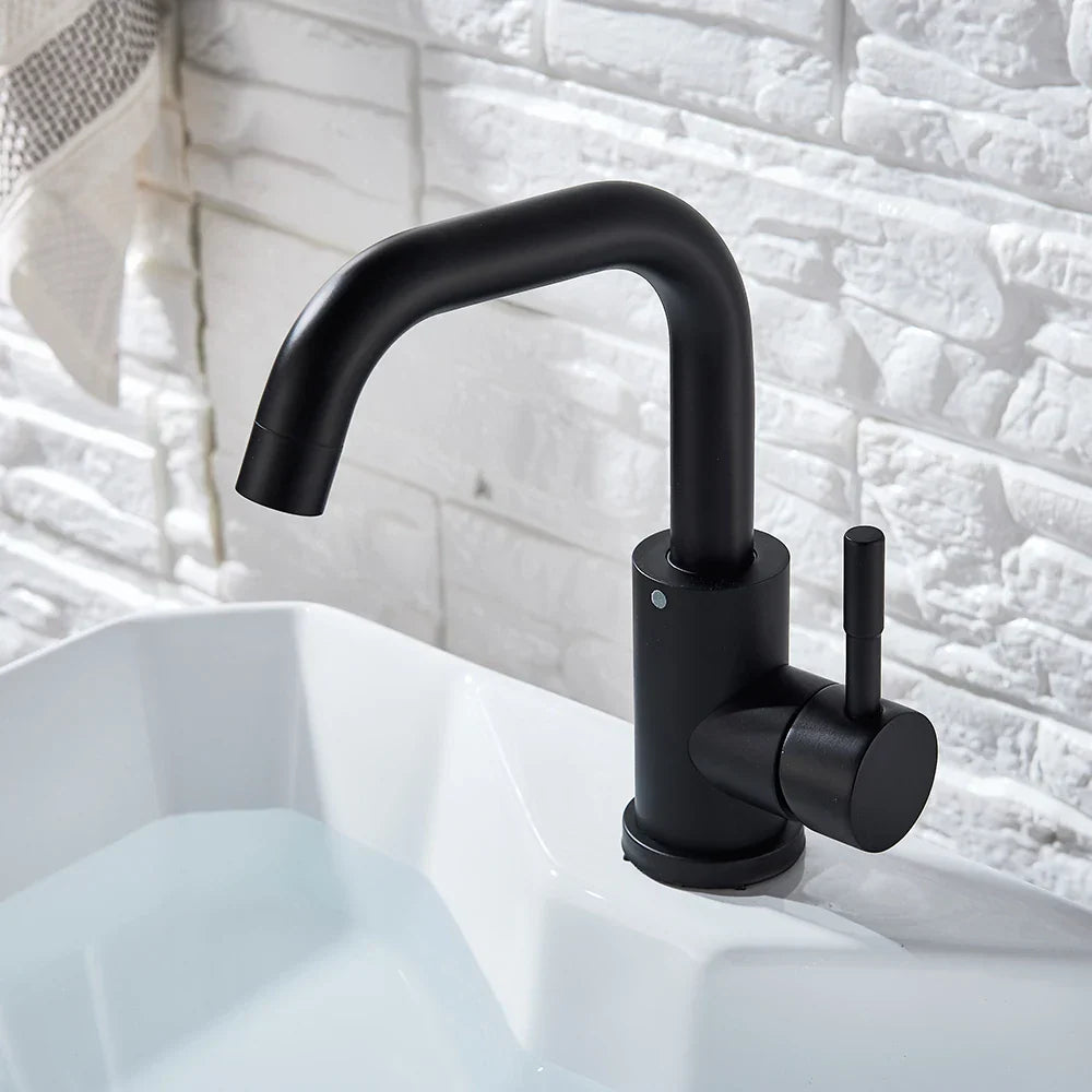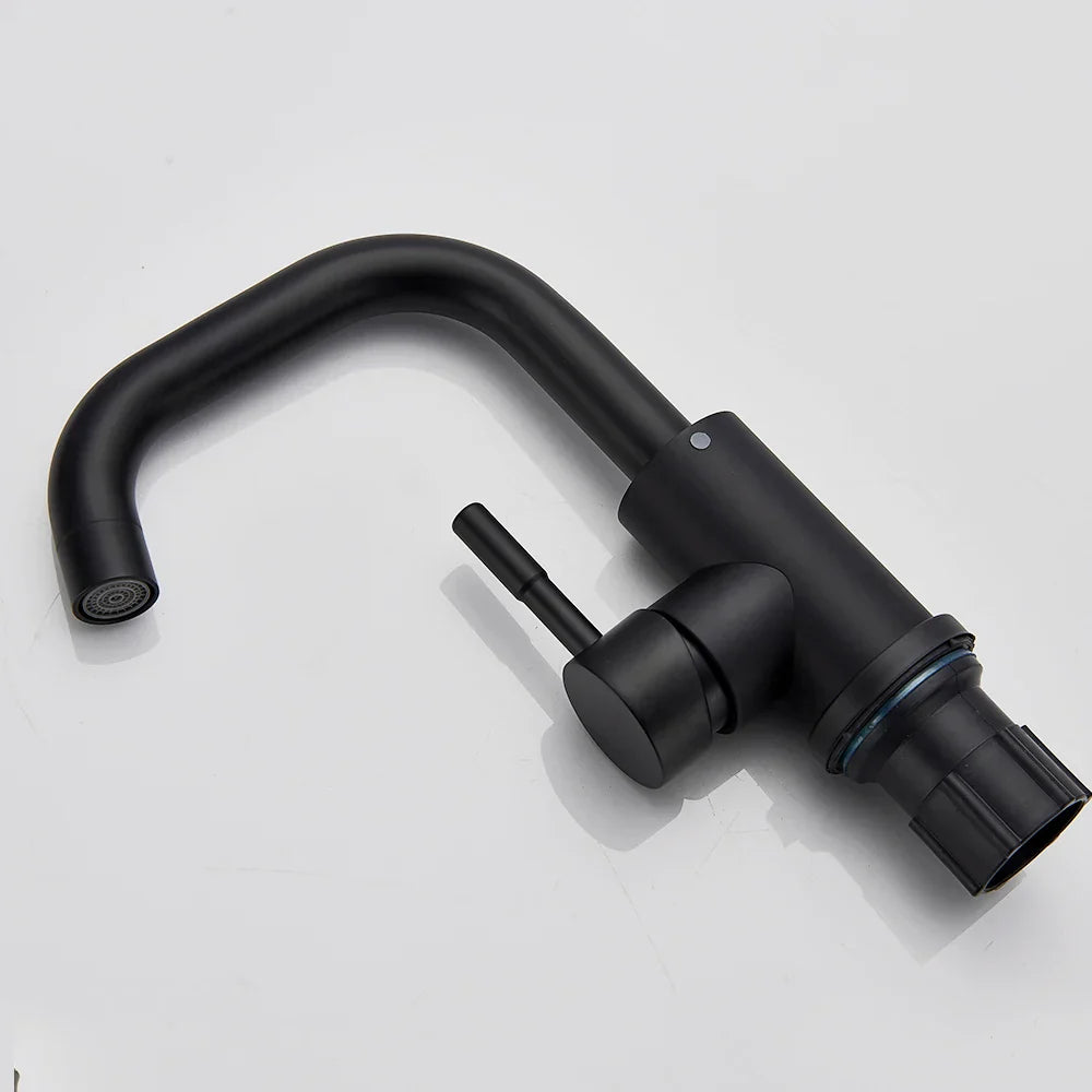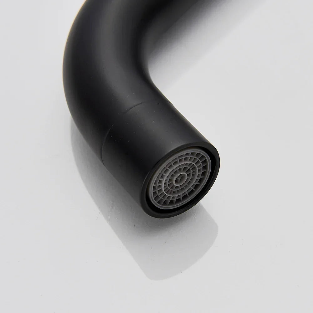 نقدم لكم صنبور حوض ديكوربايتس الأسود، صنبور حوض واحد ساخن وبارد، خلاط مطبخ قصير، إضافة أنيقة وعصرية لمطبخكم. يتميز هذا الصنبور ذو المقبضين بلمسة نهائية سوداء غير لامعة تُضفي لمسة من الأناقة على أي ديكور مطبخ.