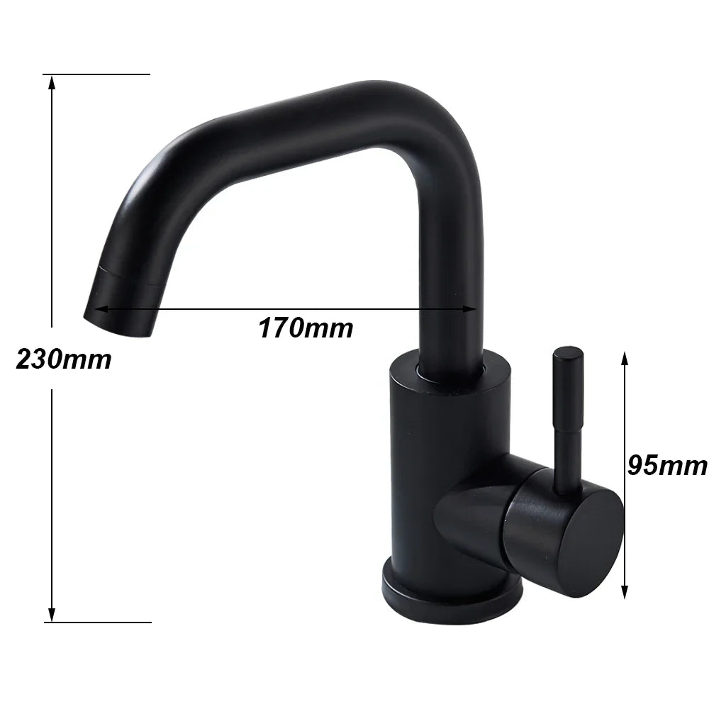 صنبور حوض ديكوربايتس™ أسود اللون، صنبور حوض مطبخ قصير دوار، بارد وساخن