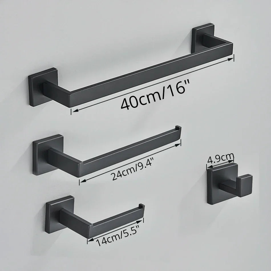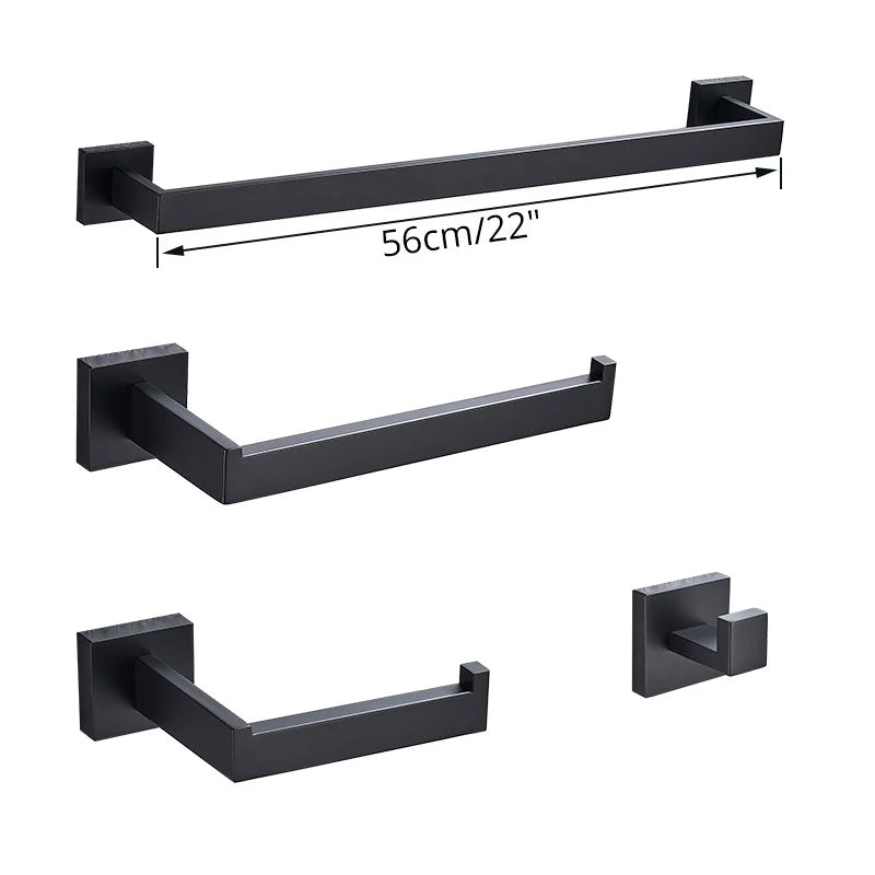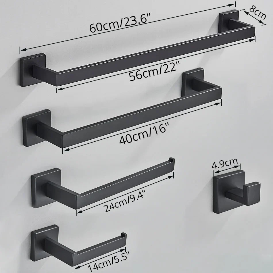 مجموعة إكسسوارات الحمام السوداء DecorBites™: خطاف رداء، سكة مناشف، رف، حامل ورق