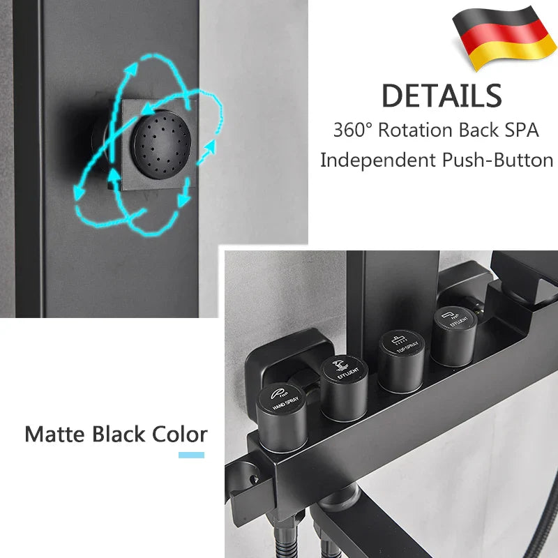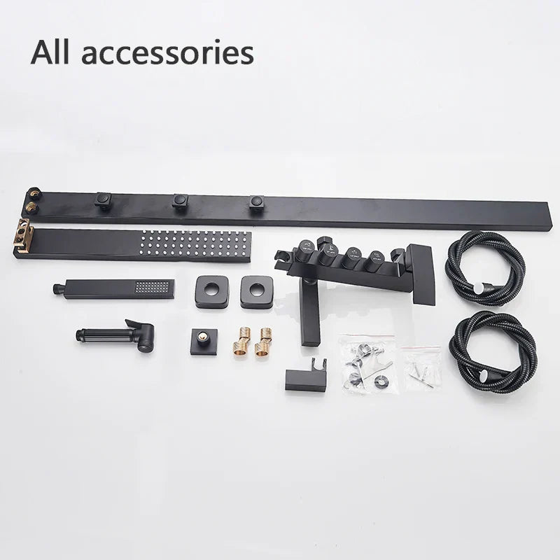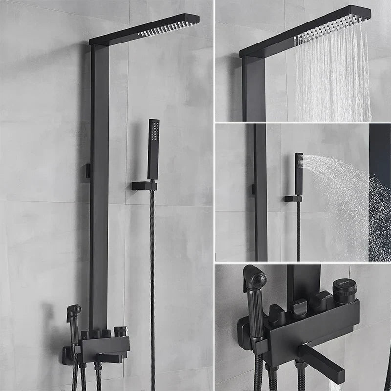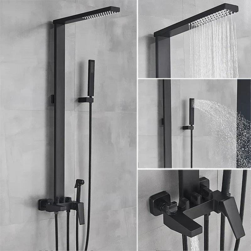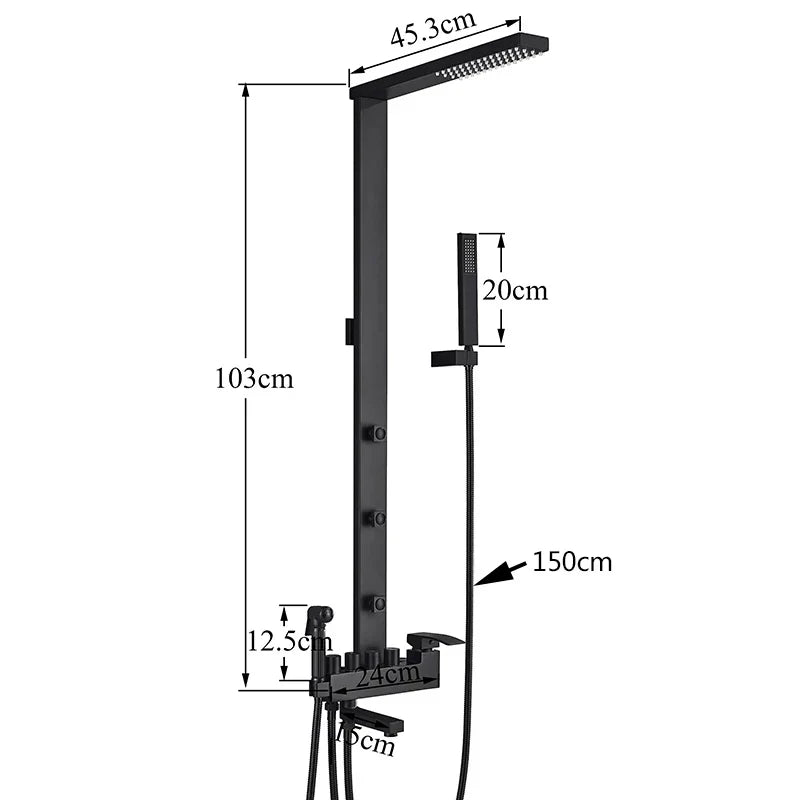 طقم دش الحمام الأسود DecorBites™ مع عمود دش مطري ونظام خلاط بيديه