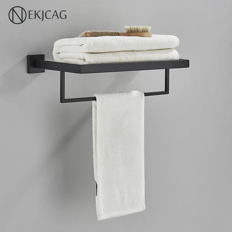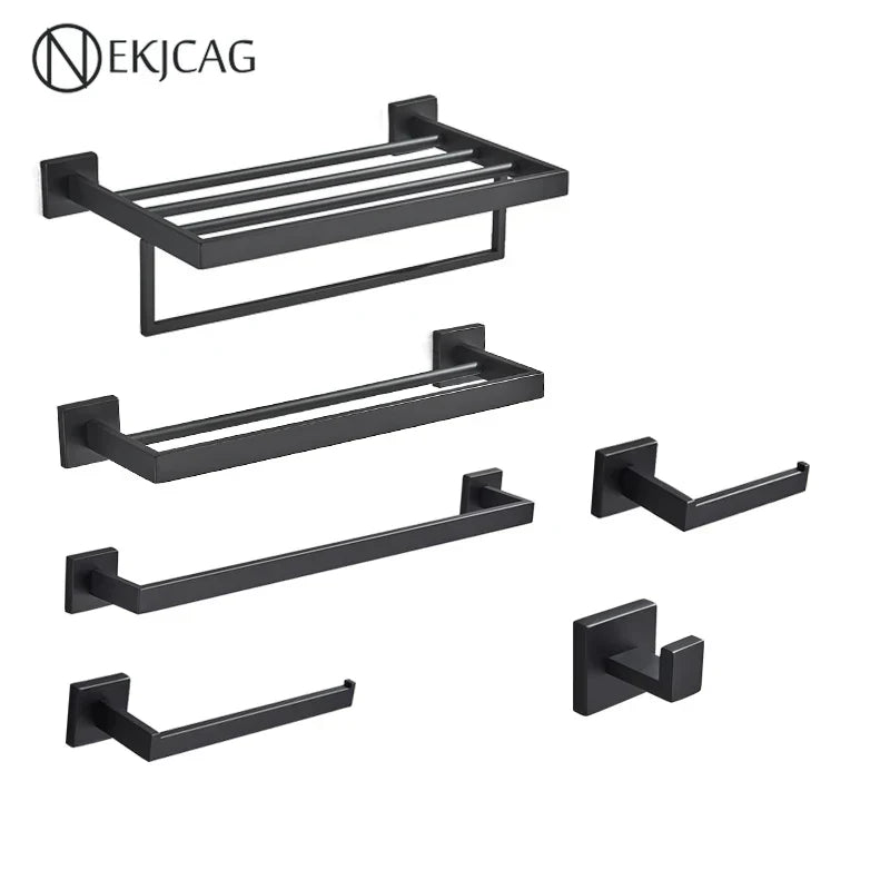 يُضفي تصميم هذه المجموعة لمسةً من الرقي على ديكور حمامك. يُعد حامل مناشف الحمام الثابت مثاليًا لتنظيم مناشفك بشكل أنيق، بينما تُضفي لمسات الأسود غير اللامع، والكروم، والنيكل المصقول، والذهبي المصقول تنوعًا يُناسب ذوقك الشخصي.