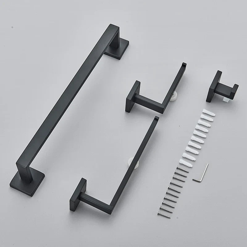 مجموعة حمام ديكوربايتس™ السوداء: حامل مناشف، حامل ورق، قضيب ذهبي، خطاف رداء - إكسسوارات من الفولاذ المقاوم للصدأ