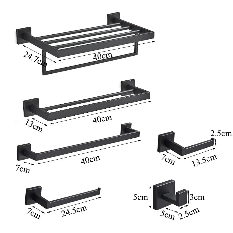 صُممت مجموعة ديكوربايتس السوداء للحمام والمطبخ، وتتميز بسهولة التركيب على الحائط. اطمئن، ستبقى مناشفك وأردية حمامك ثابتة في مكانها بفضل تصميم التركيب الآمن.