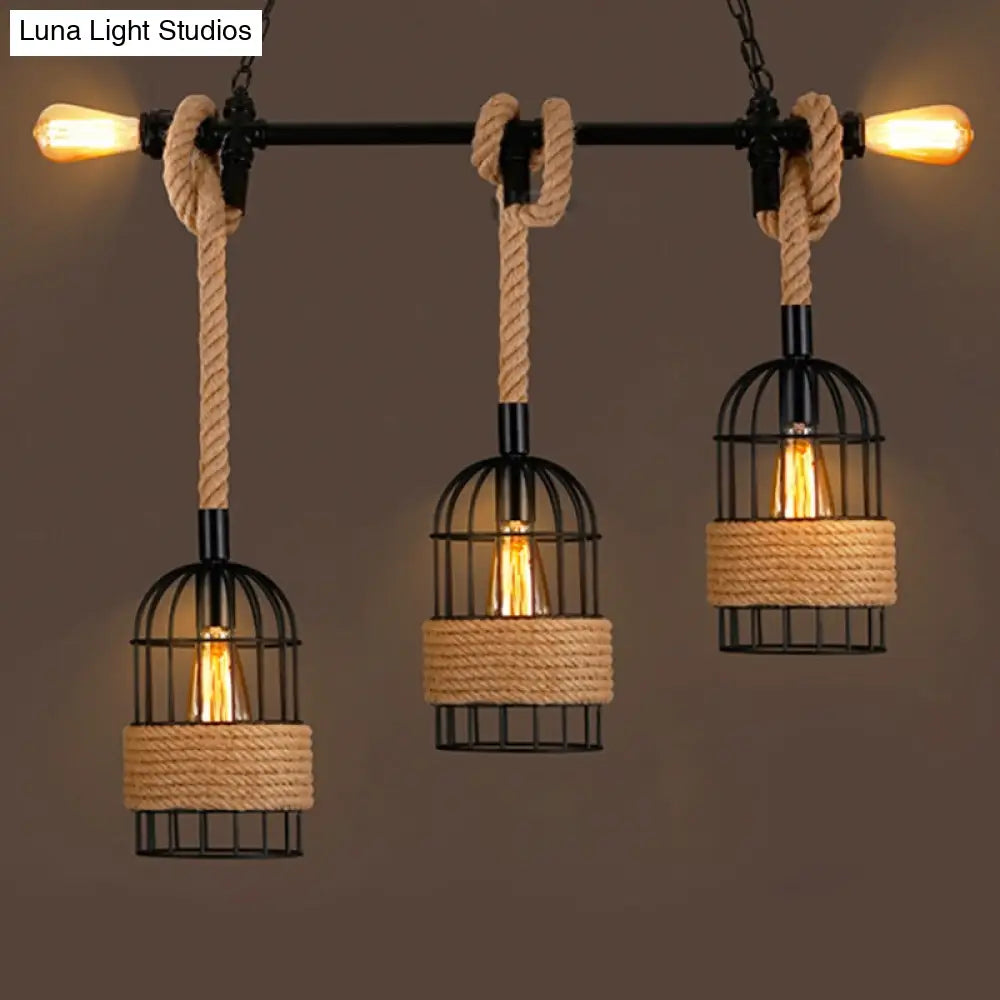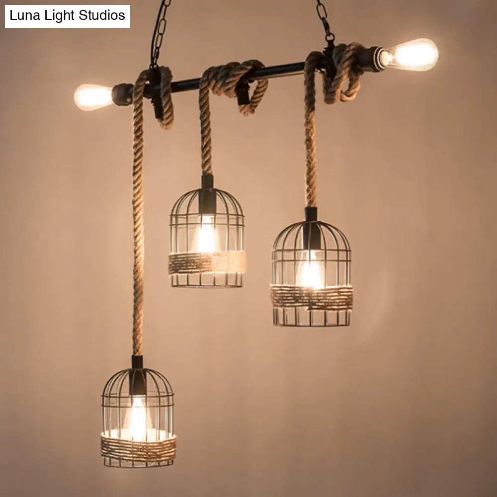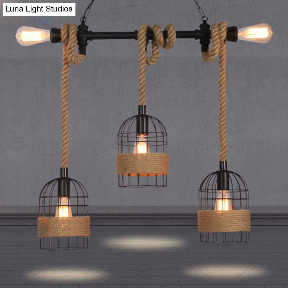 ديكوربايتس™ مصباح معلق على شكل قفص طيور أسود مع سلك من الجوت - 5 لمبات، تصميم معدني من المصنع