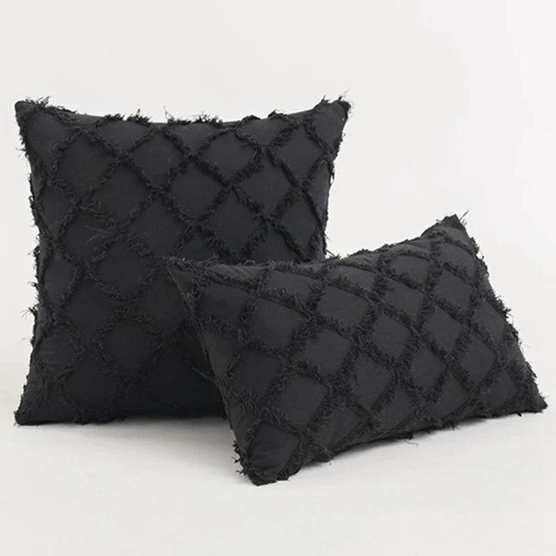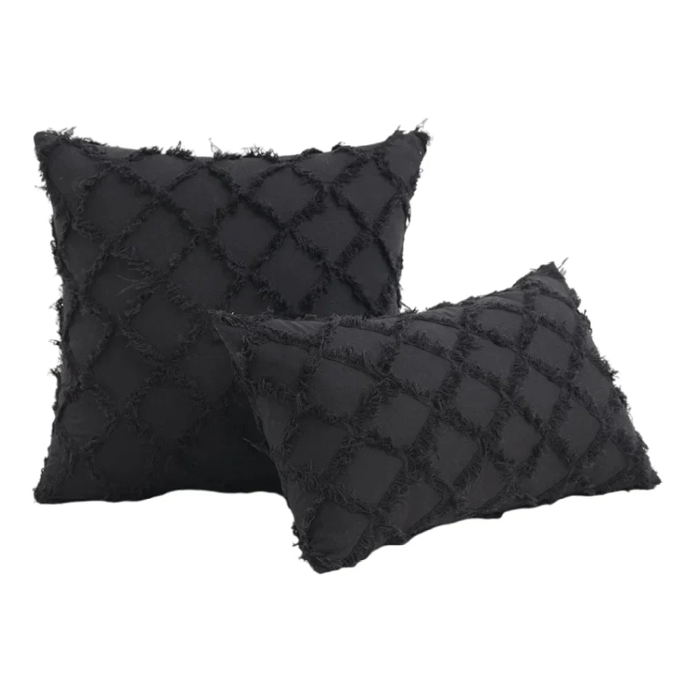 غطاء وسادة منسوج قطني بتصميم بوهو أسود من DecorBites™ لديكور غرفة النوم والسرير