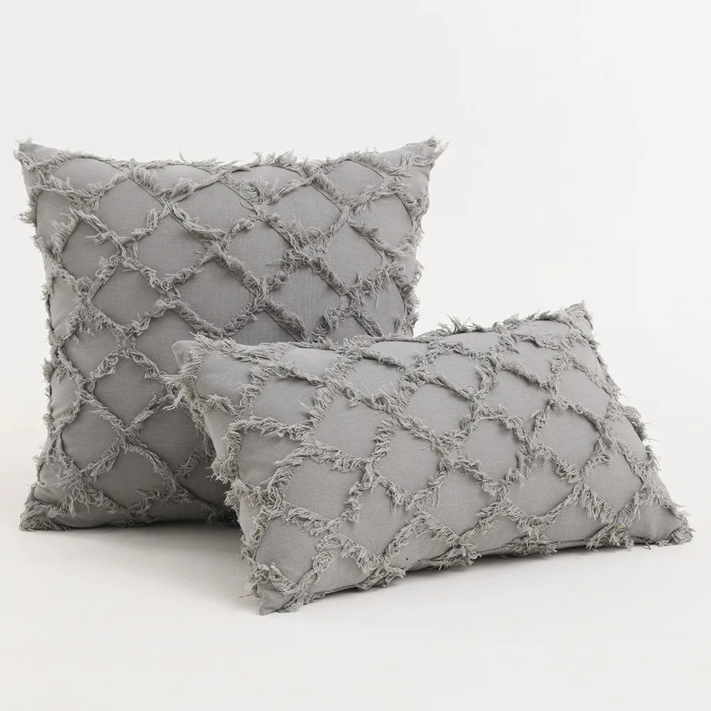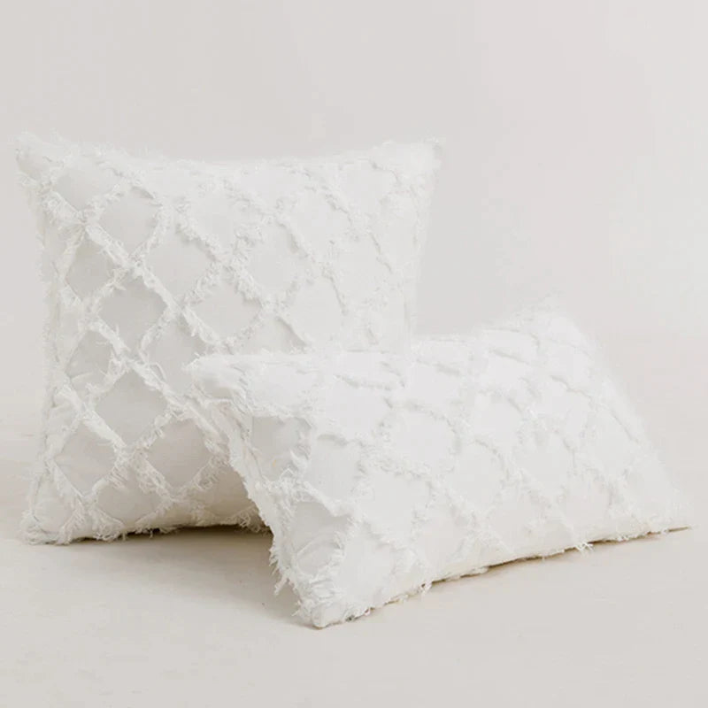 استمتع بنمط النسيج المعقد لغطاء الوسادة هذا، وأضف لمسة من الأناقة إلى مساحتك. تصميمه المطرز المتين يضفي مظهرًا آسرًا يُعزز جمال غرفة نومك.