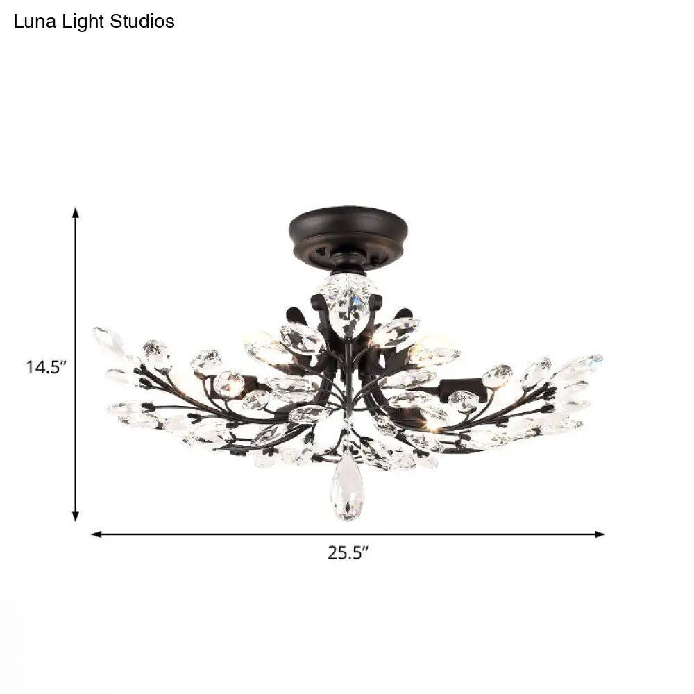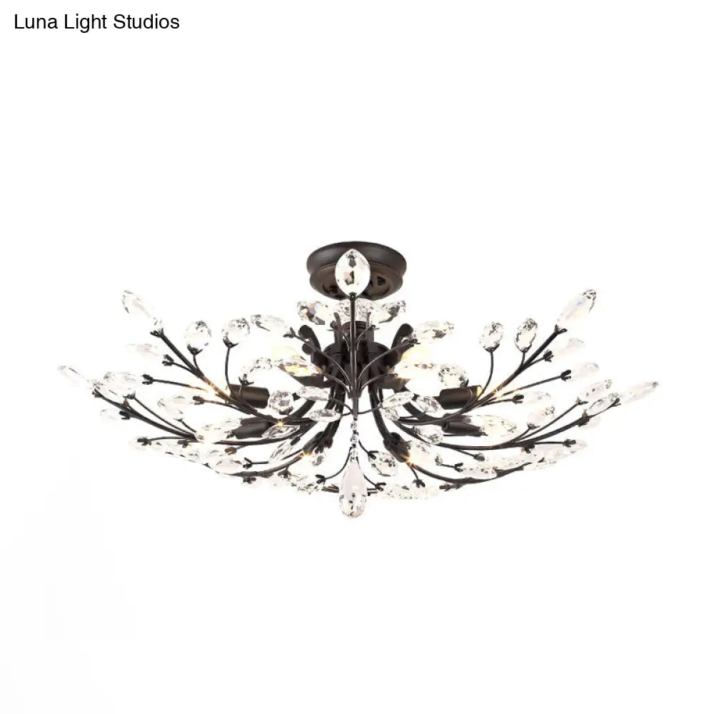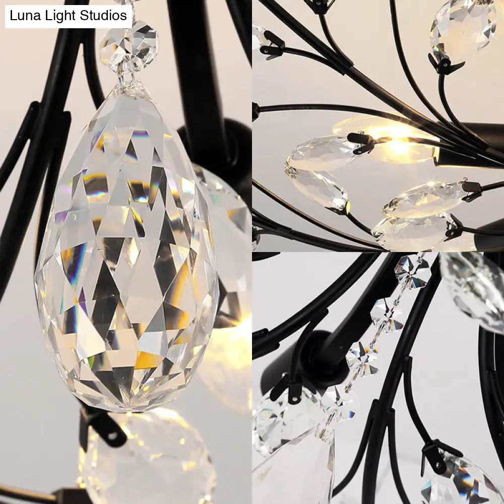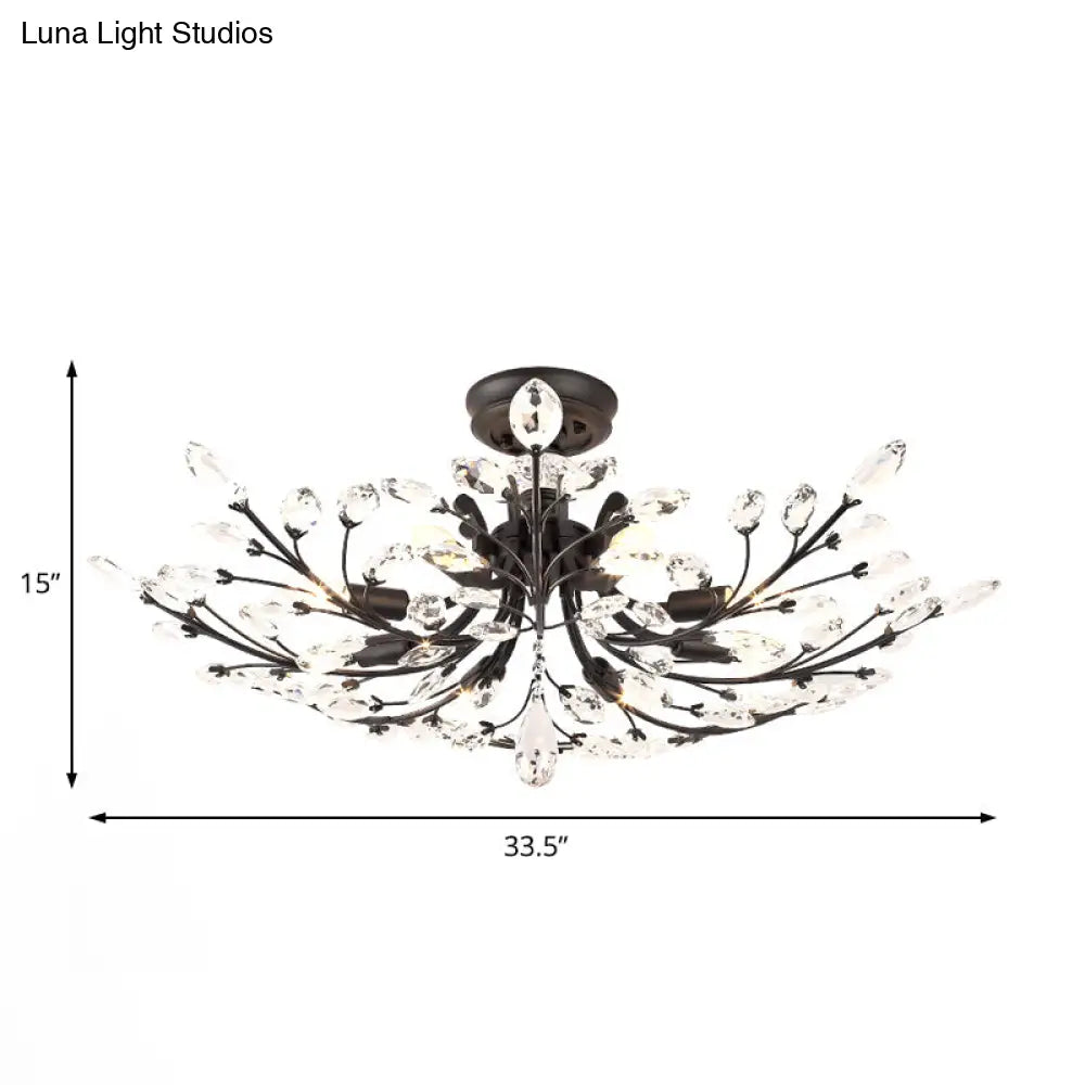 ديكوربايتس™ مصباح شبه مدمج على شكل ورقة كريستال سوداء - تركيبات سقف معدنية حديثة مع 6/8/10 مصابيح