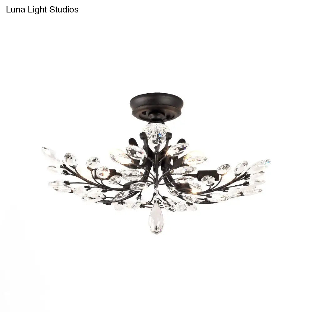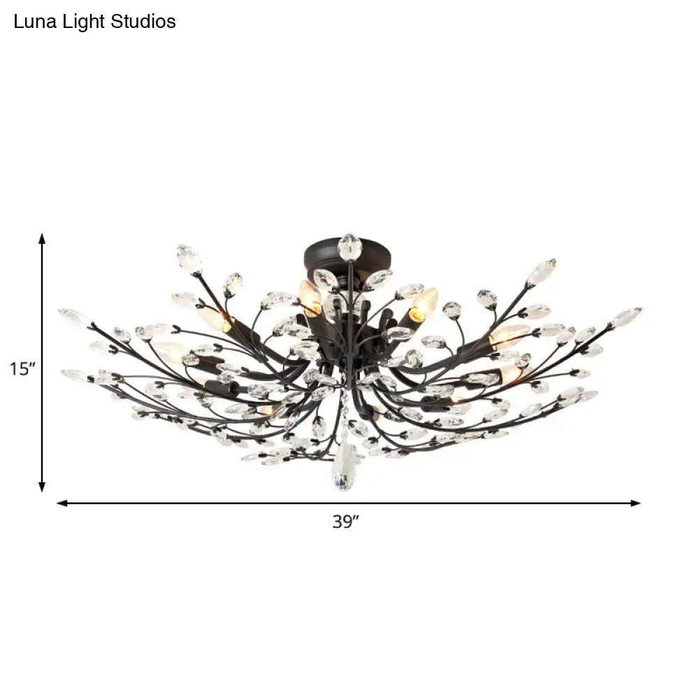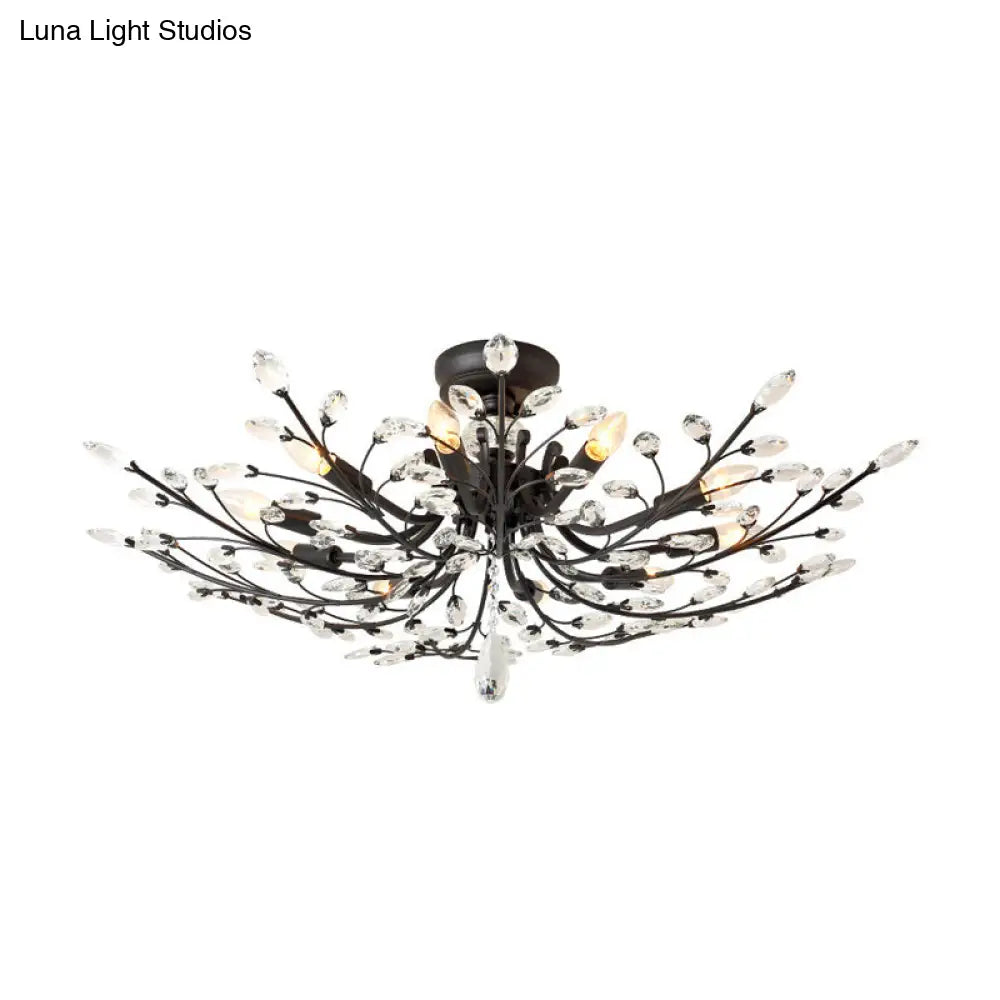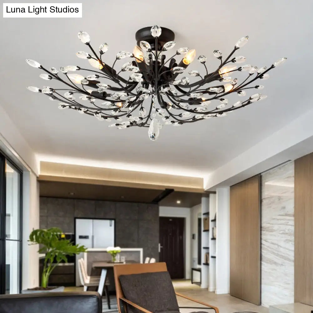 ديكوربايتس™ مصباح شبه مدمج على شكل ورقة كريستال سوداء - تركيبات سقف معدنية حديثة مع 6/8/10 مصابيح
