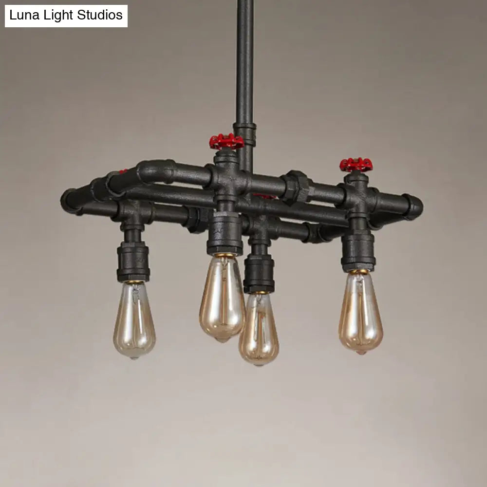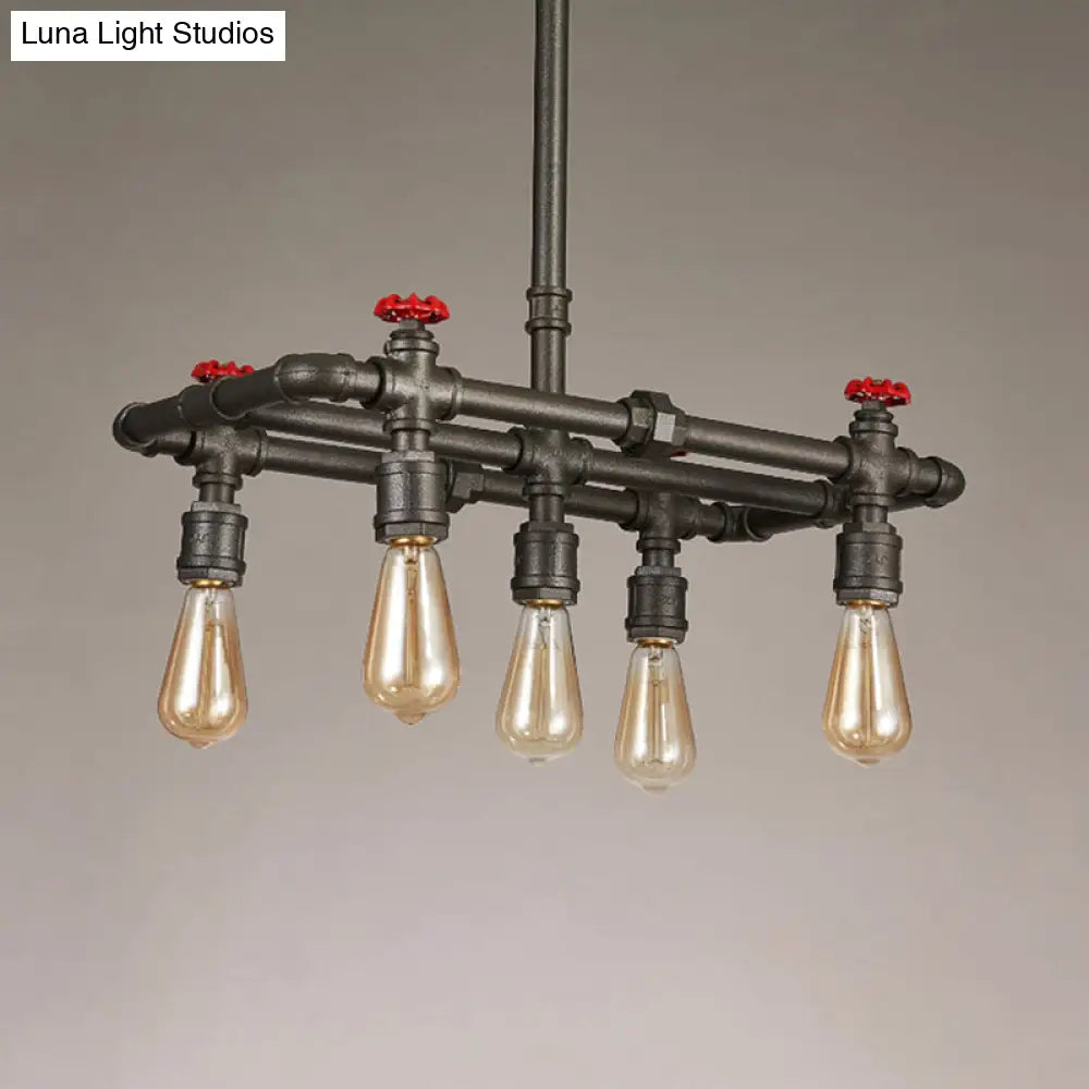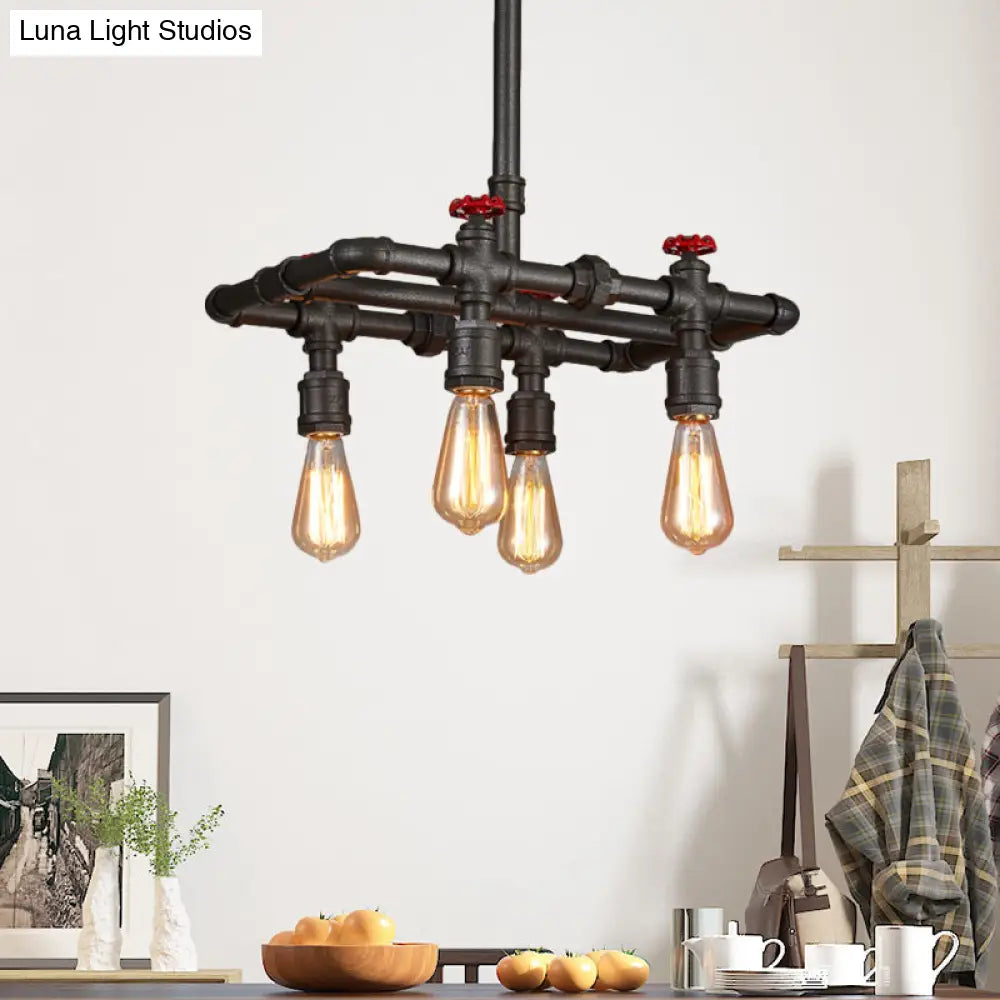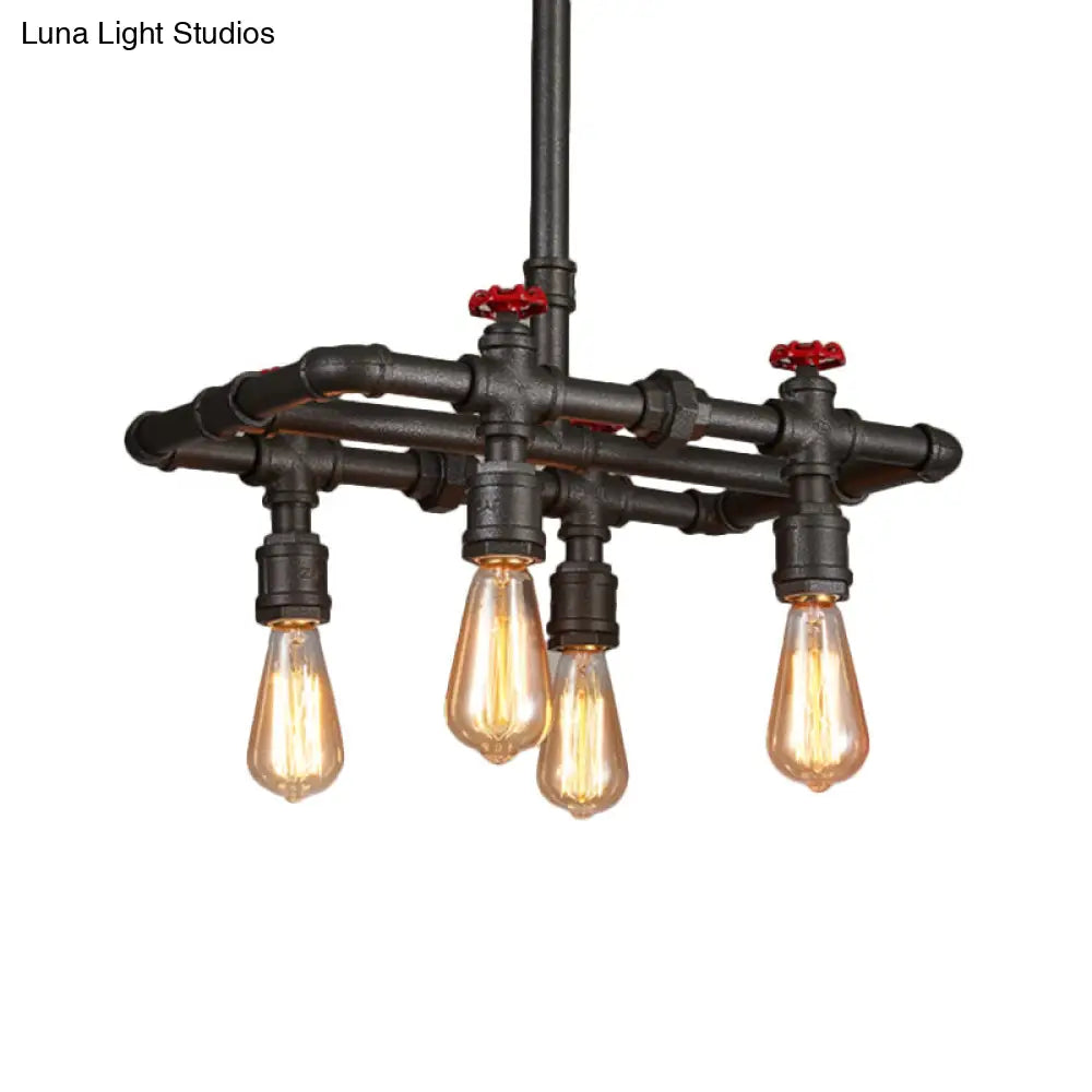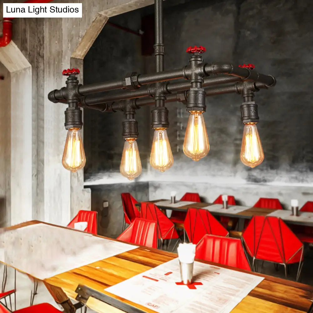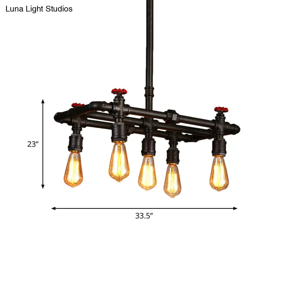 ديكوربايتس™ مصباح سقف معلق بلمسة نهائية سوداء: إطار مستطيل، مصباح جزيرة عتيق بأربعة أضواء وخماسية لطاولة الطعام