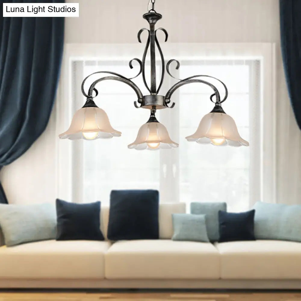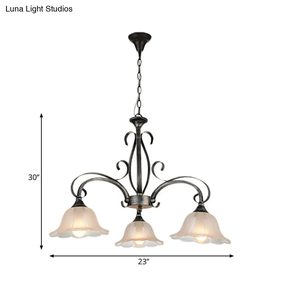 ديكوربايتس™ مصباح سقف معلق من الزجاج المصنفر الأسود بتصميم واسع - 3 لمبات لغرف المعيشة