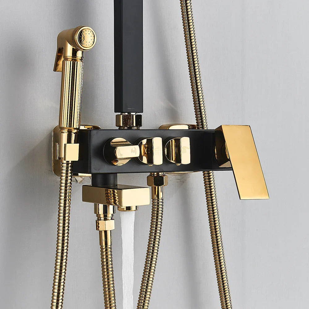 مجموعة صنبور دش بيديه باللون الأسود الذهبي من ديكوربايتس™ مع خلاط دش يدوي