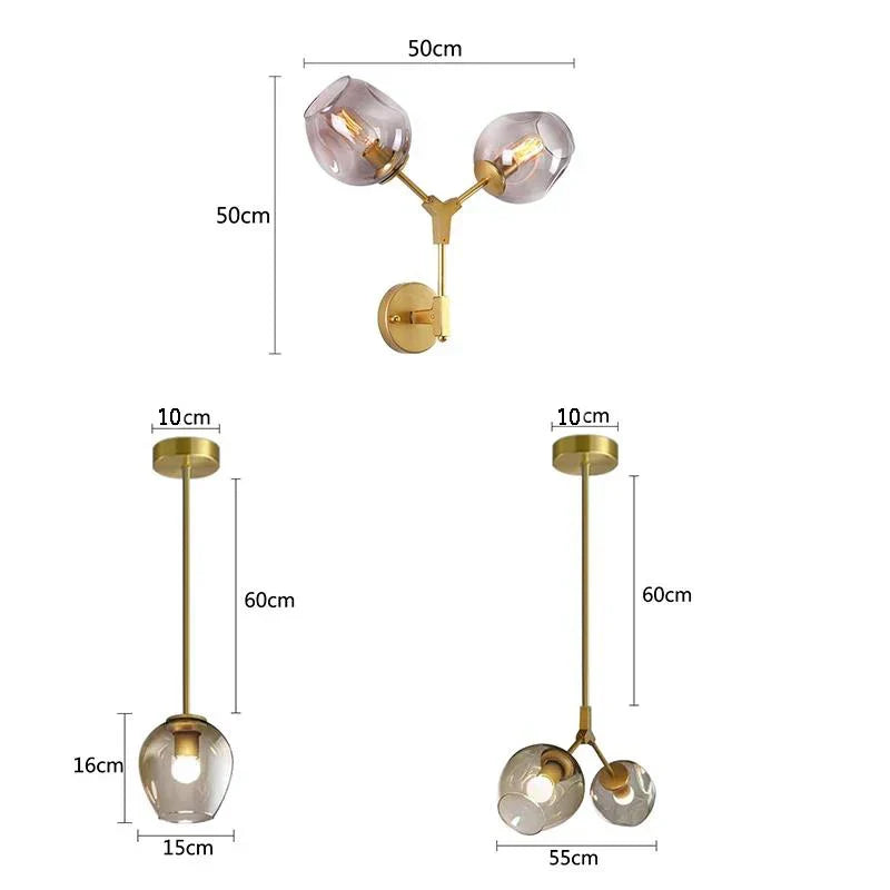 مصابيح الحائط الزجاجية باللون الأسود الذهبي من DecorBites™ لإضاءة ديكور المنزل العصري