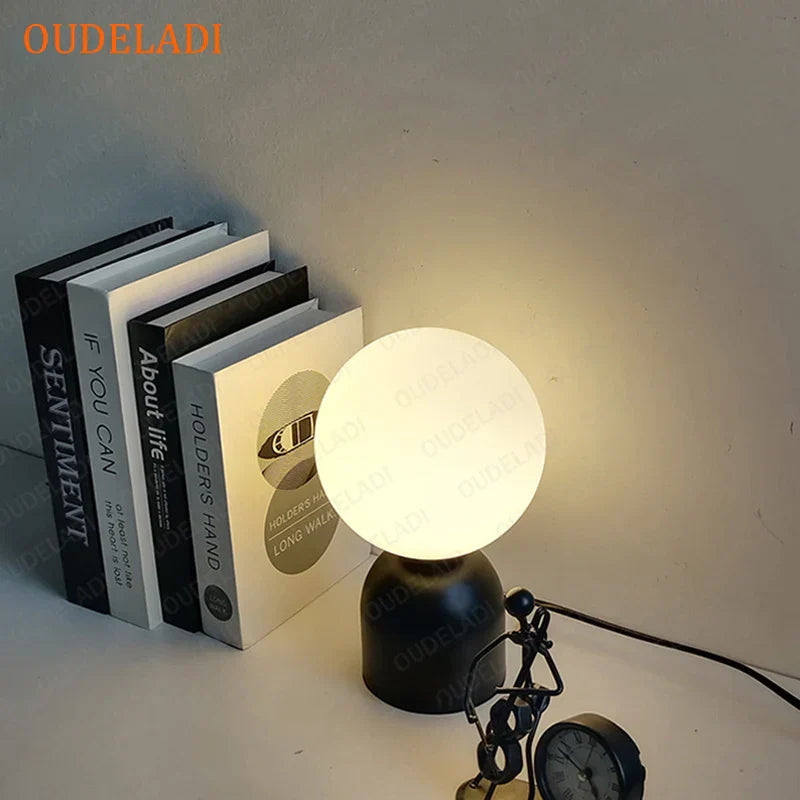 مصابيح طاولة DecorBites™ مصنوعة من كرات زجاجية من الحديد الأسود - وحدة إضاءة LED نورديك للديكور المنزلي