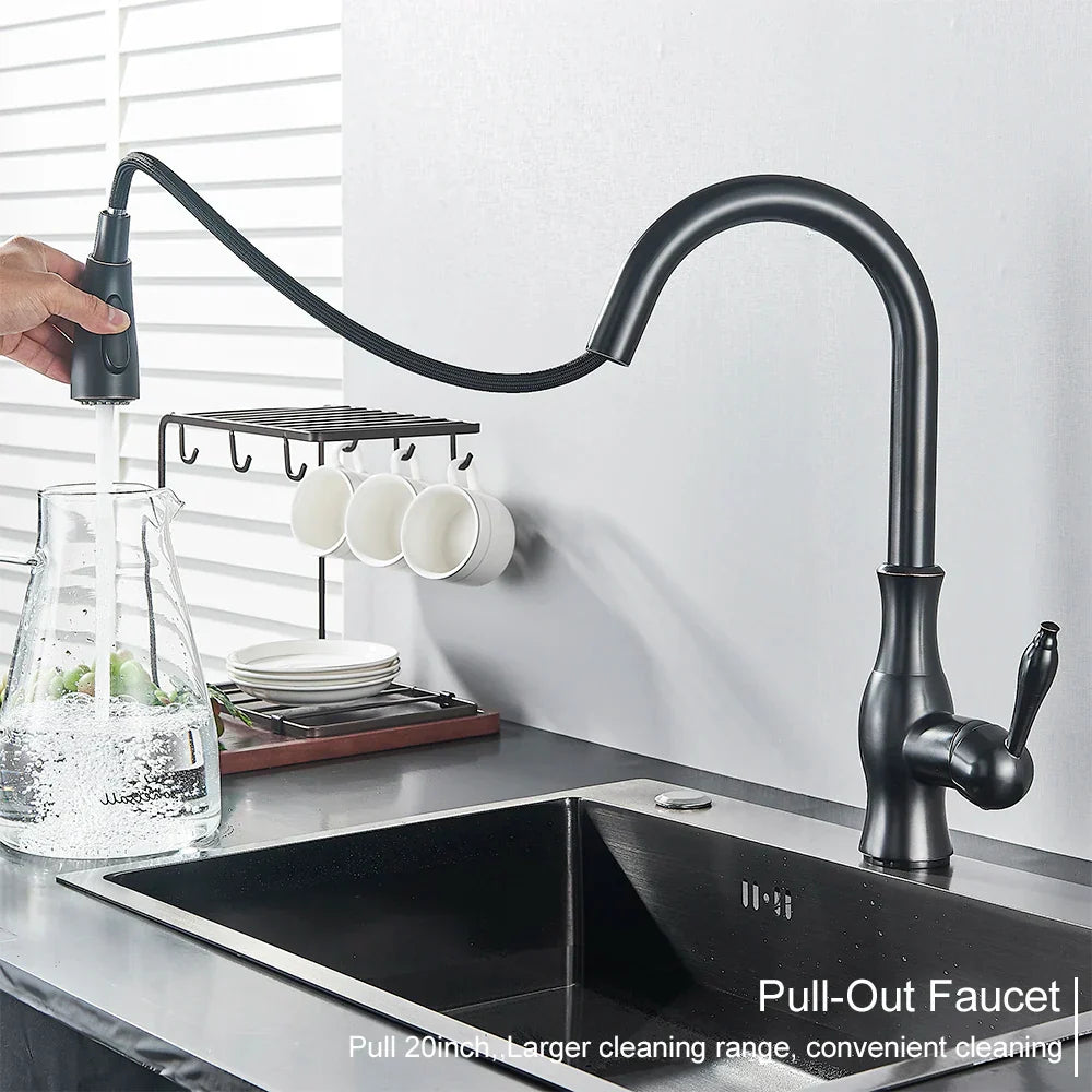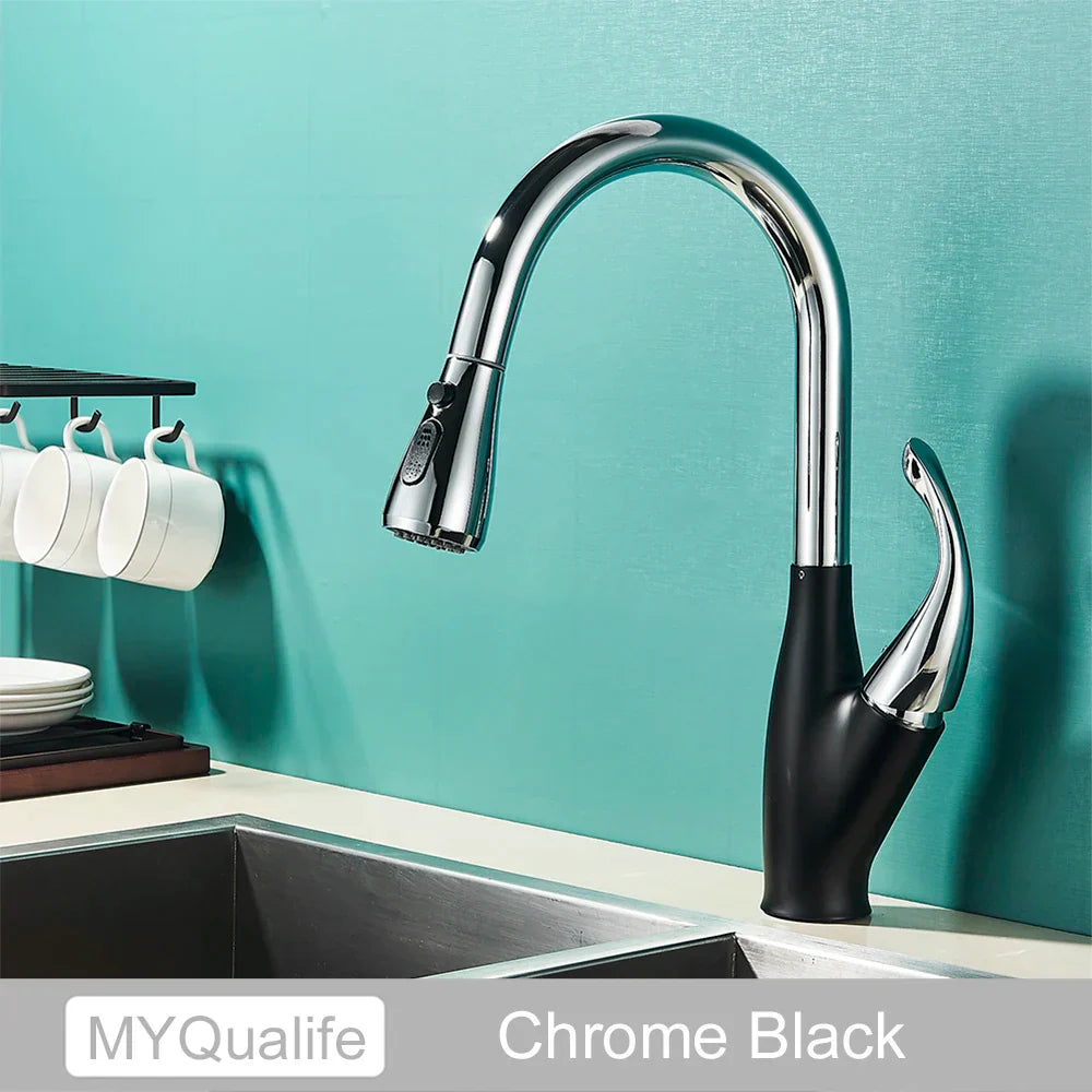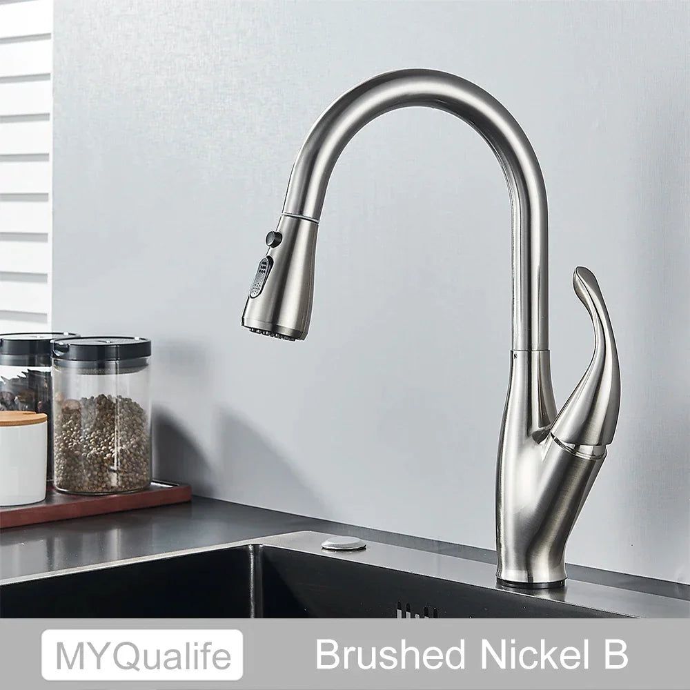 صُممت هذه الحنفية الرائعة للمطبخ خصيصًا لأصحاب المنازل ذوي الذوق الرفيع، وتتميز بلمسة نهائية أنيقة من النيكل/الأسود المصقول، تُكمل ديكور أي مطبخ عصري بكل سهولة. يُضفي صنبور الرش القابل للسحب لمسة من الرقي، بينما يتيح الفوهة الدوارة بزاوية 360 درجة استخدامًا مرنًا في أي حوض مطبخ.