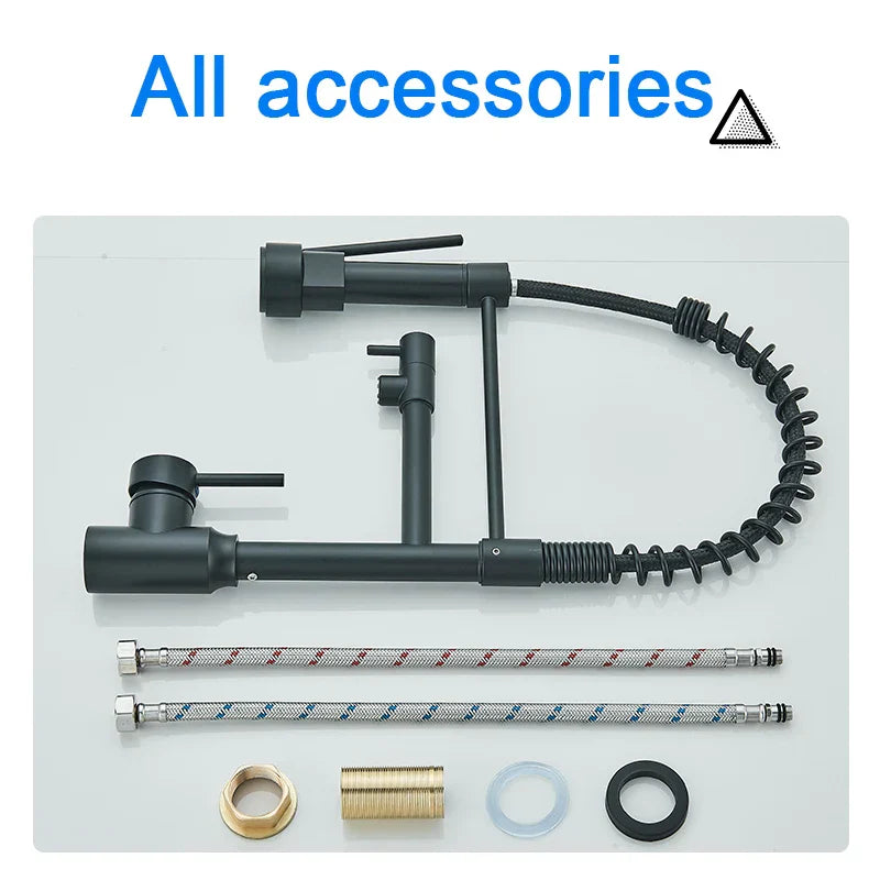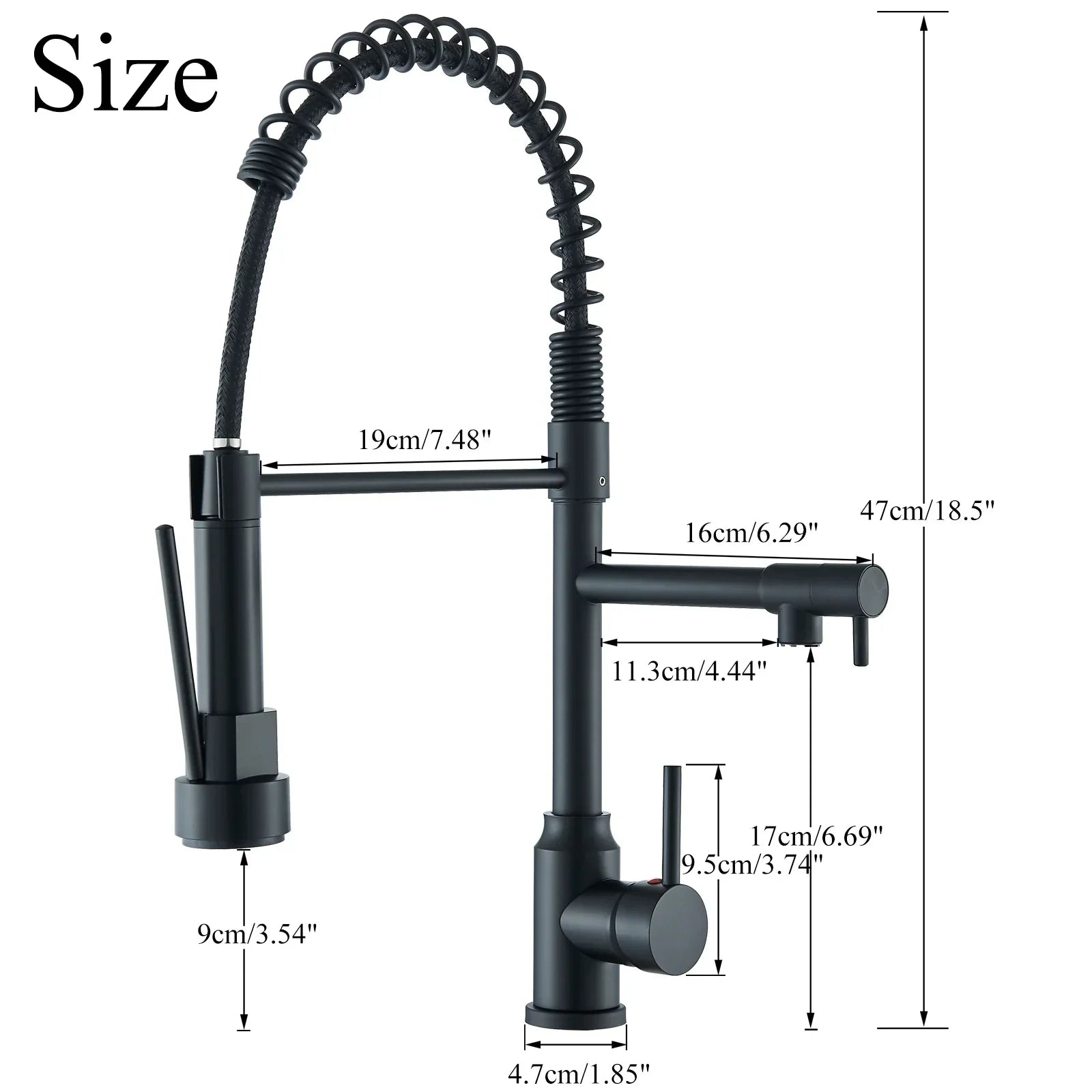 حسّن مطبخك مع صنبور المطبخ الأسود من ديكوربايتس، المزود بخلاط زنبركي قابل للسحب للأسفل وفوهة مزدوجة. مع جميع ملحقات التركيب اللازمة، هذا الصنبور جاهز لتغيير مطبخك. استثمر في الجودة والأناقة مع ديكوربايتس اليوم.