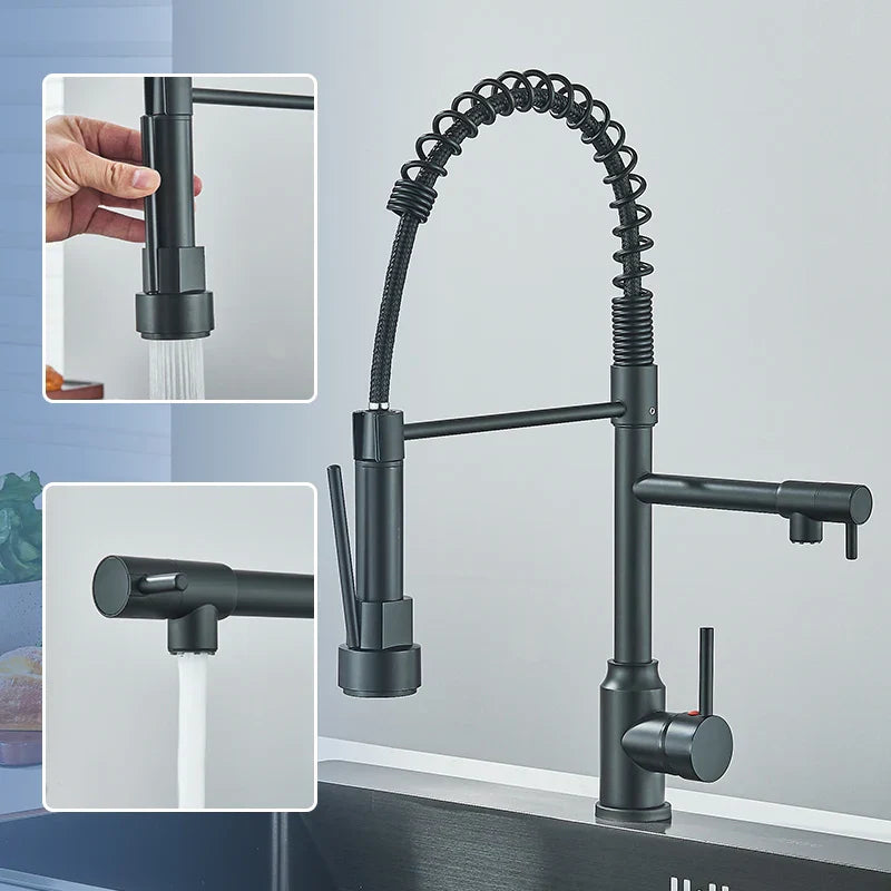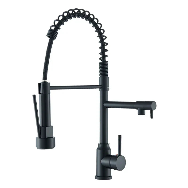صنبور مطبخ أسود DecorBites™ مزود بنابض سحب للأسفل وفوهة مزدوجة وصنبور خلاط