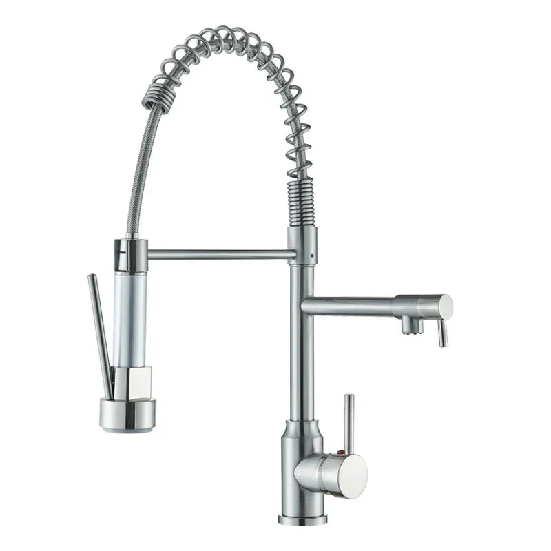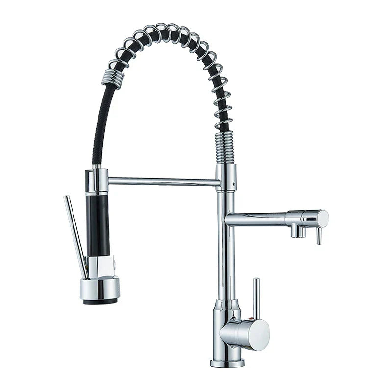 مزود بقلب صمام سيراميكي ورذاذ سحب للأسفل، يوفر هذا الصنبور أداءً مثاليًا لمهام مطبخك اليومية. يوفر دورانه بزاوية 360 درجة وفوهته المزدوجة مرونةً وراحةً، مما يُسهّل ملء الأواني والمقالي بجميع أحجامها.