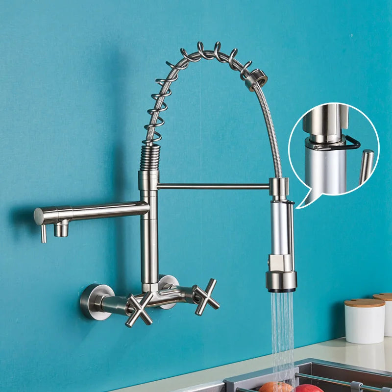 قم بتحديث مطبخك باستخدام صنبور المطبخ الأسود Decorbites المثبت على الحائط ذو الفوهات الدوارة المزدوجة وخلاط حوض الوعاء واستمتع بالمزيج المثالي بين الأناقة والوظيفة والجودة في حزمة واحدة مذهلة.