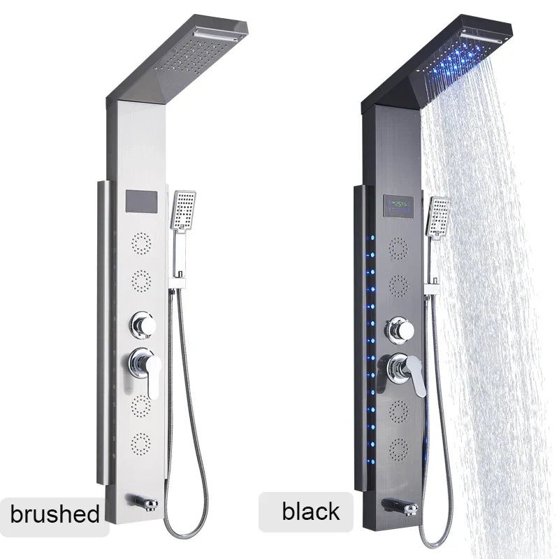 لوحة دش DecorBites™ سوداء LED مزودة بخمس وظائف، صنبور حمام مثبت على الحائط - دش بارد وساخن