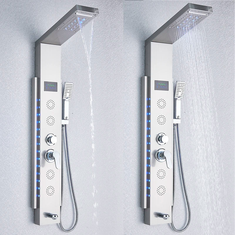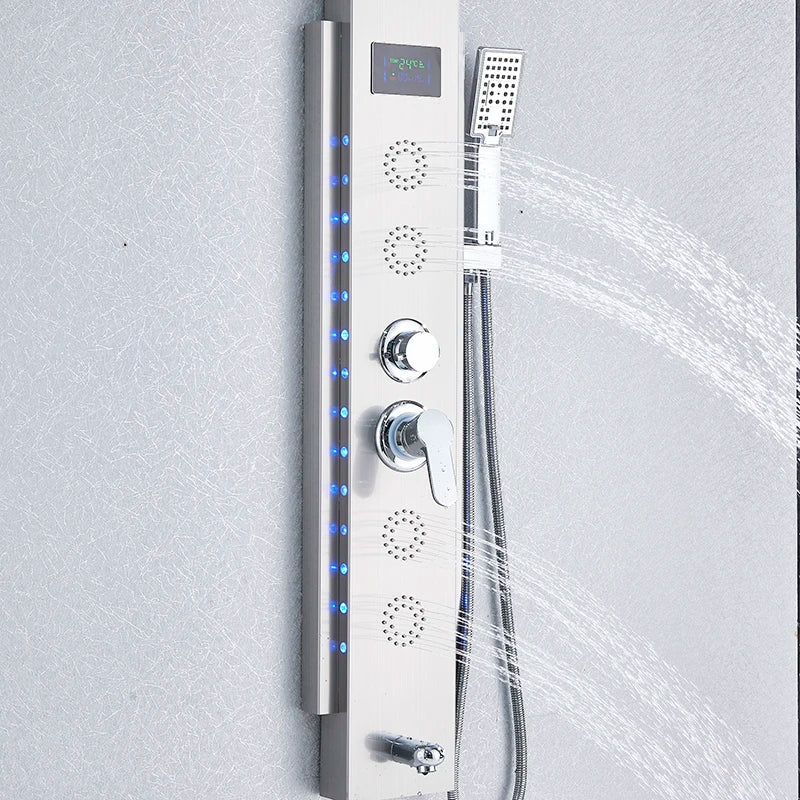 صُممت لوحة الدش هذه لراحة أكبر، وتتميز بمقبض واحد للتحكم السهل في درجة الحرارة وتدفق الماء. يضمن نظام التحكم المزدوج المزود بحاملين إمكانية التبديل بسهولة بين إعدادات الماء البارد والساخن، مما يتيح لك الحصول على درجة حرارة الدش المثالية في كل مرة.