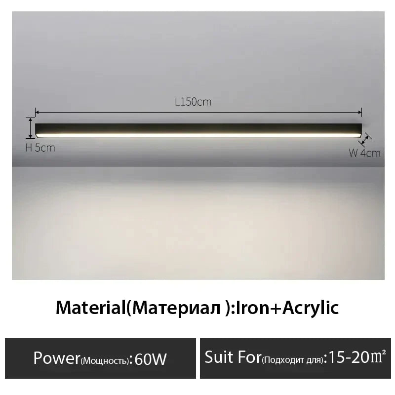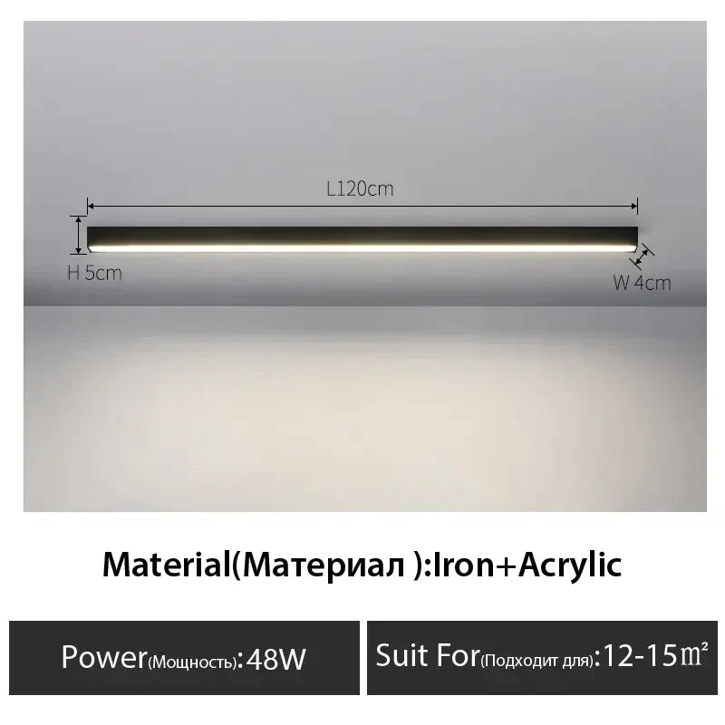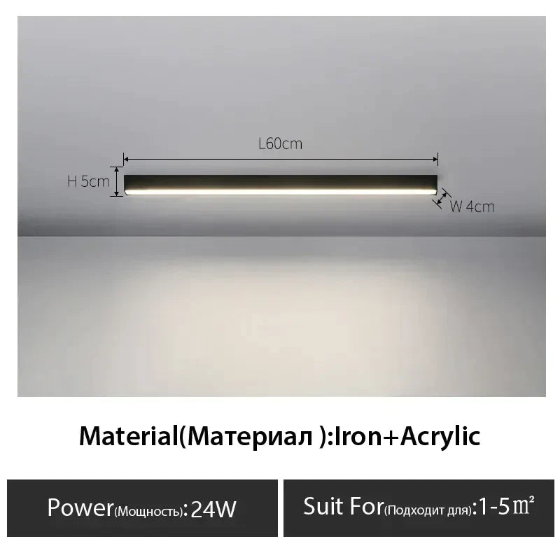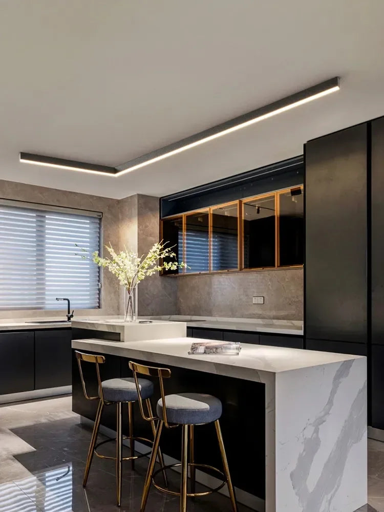 مصباح سقف LED خطي أسود من DecorBites™ لغرفة المعيشة والممر وغرفة الطعام