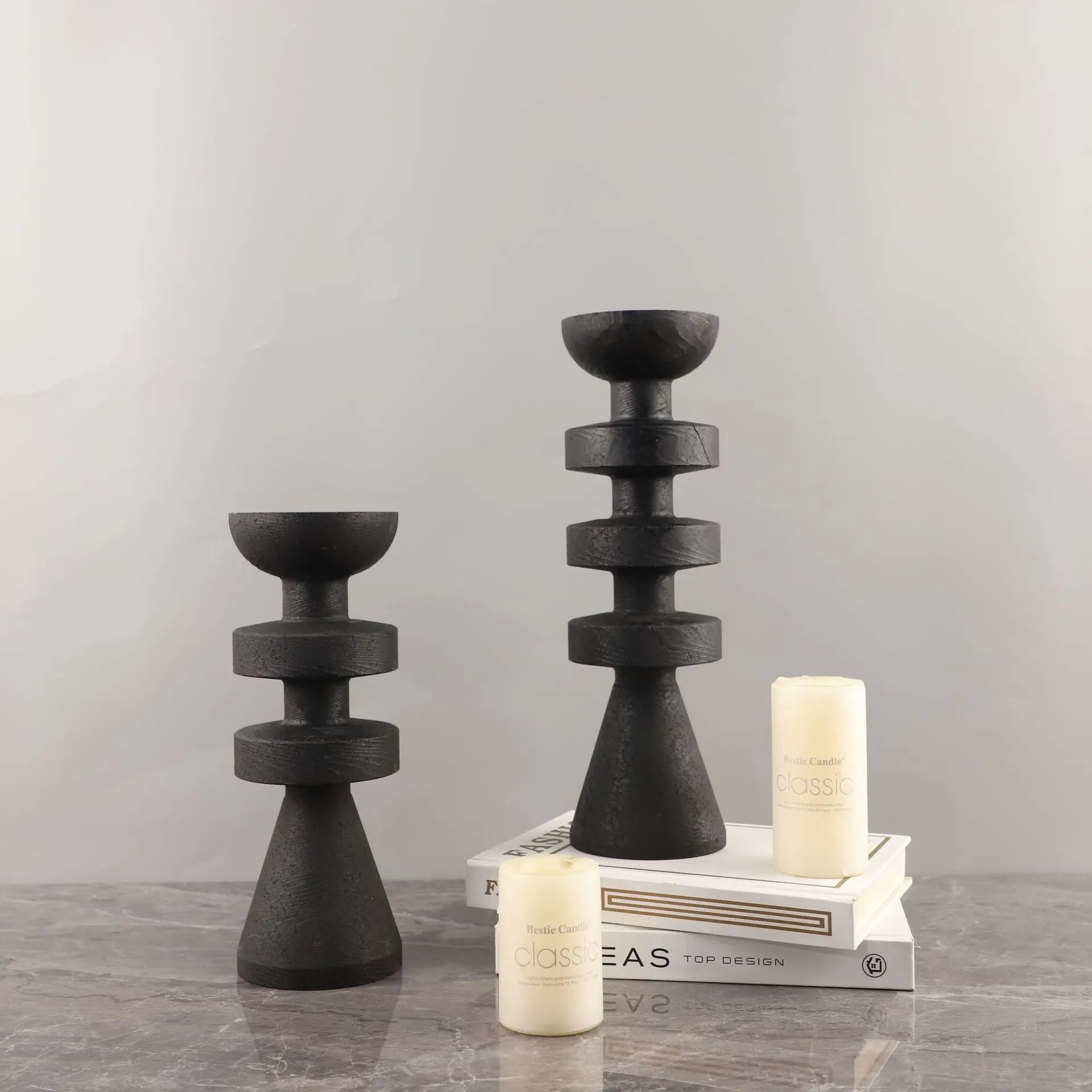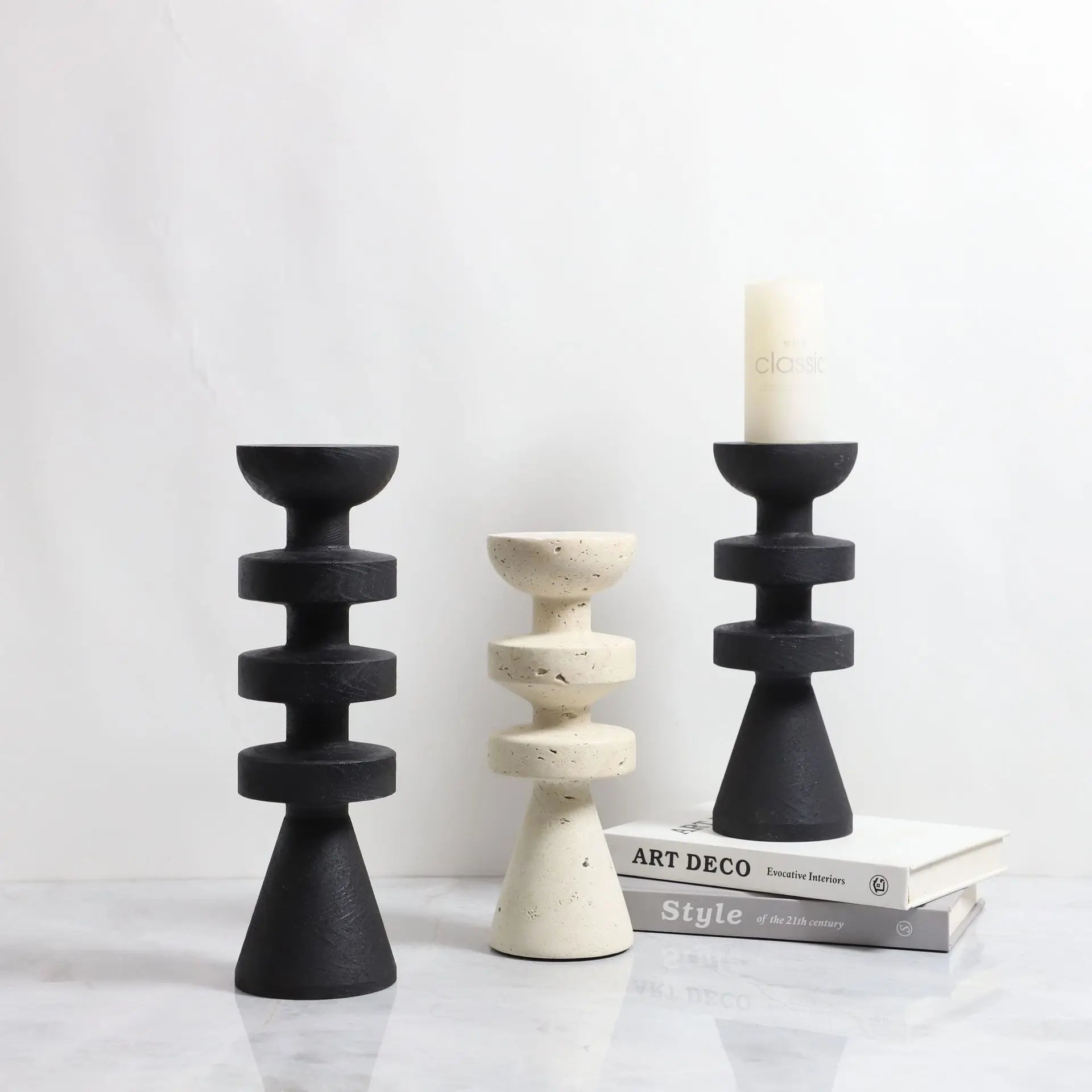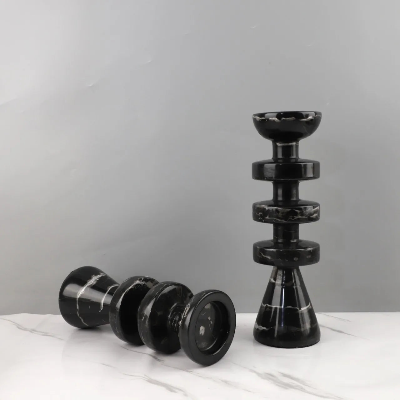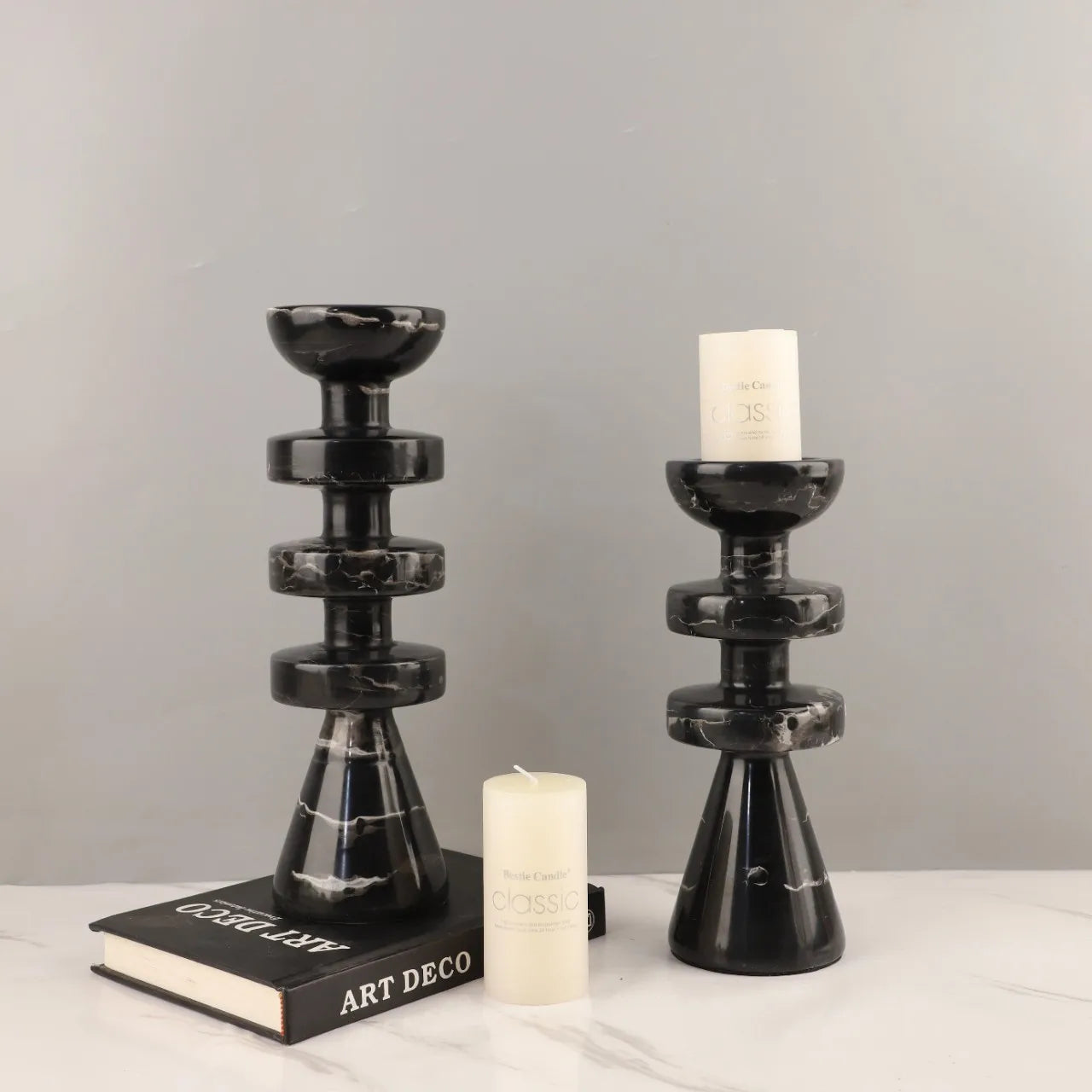 حامل شموع من الرخام الأسود من DecorBites™، حامل شموع من الحجر الأصفر العصري