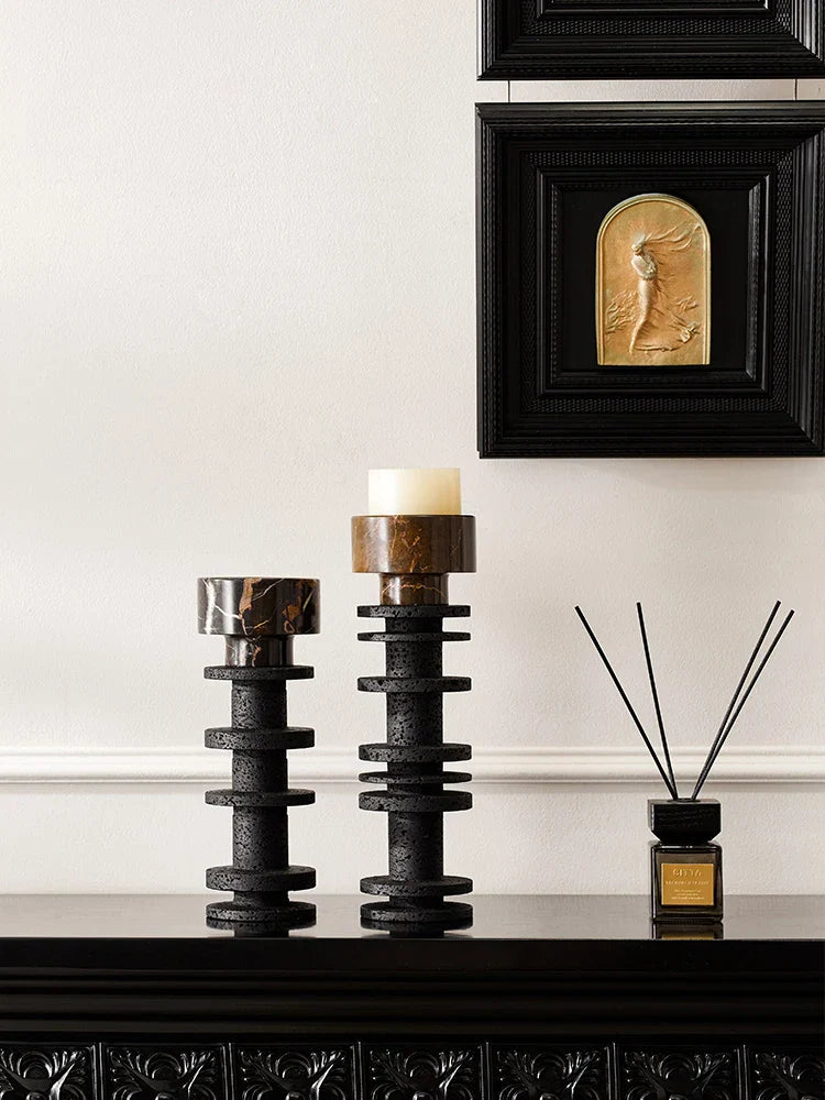 شمعدان عمودي من الرخام الأسود من DecorBites™ لقطع مركزية أنيقة للطاولة