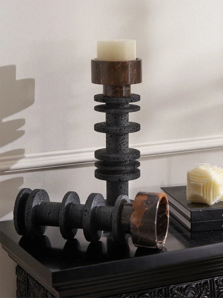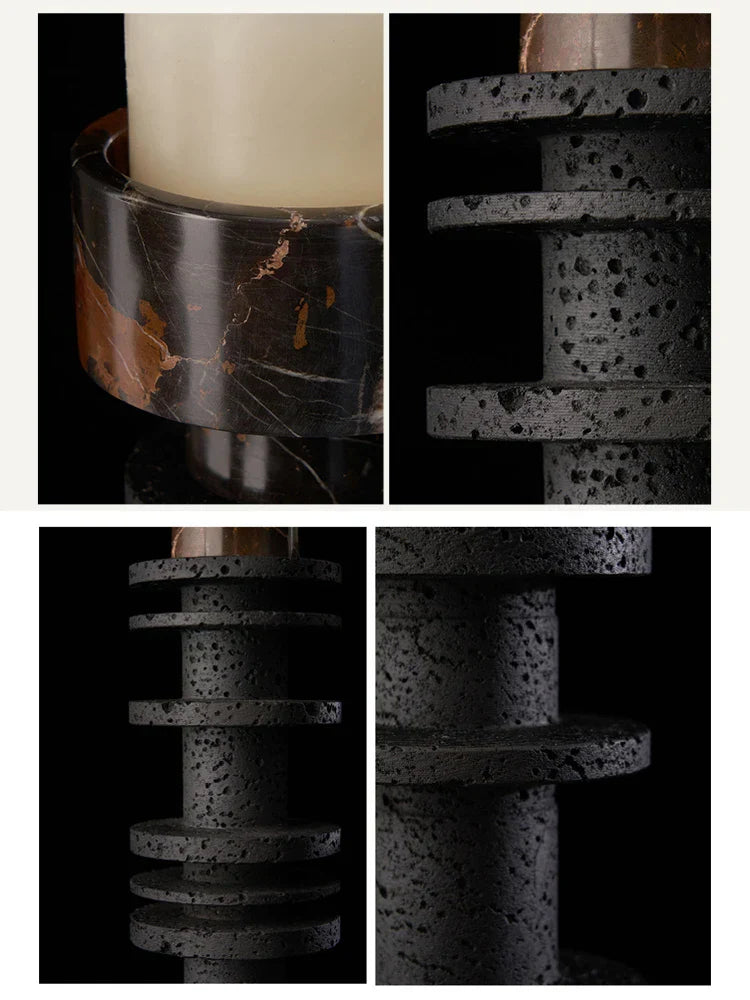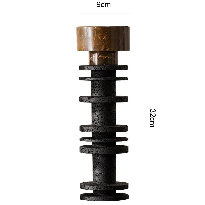 صُنع هذا الشمعدان من الترافرتين الفاخر والرخام، ويتميز بتصميم عصري يُكمل أي ديكور منزلي بكل سلاسة. يُضفي مزيج اللونين الأسود والبورتورو الرائع لمسةً من الفخامة والرقي، مما يجعله خيارًا مثاليًا لمن يُقدّرون أرقى ما في الحياة.