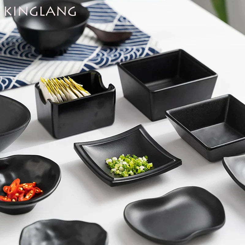 نقدم لكم طقم أطباق وأطباق الصلصة البلاستيكية المصنوعة من الميلامين الأسود من ديكوربيتس - عبوة من 4 قطع