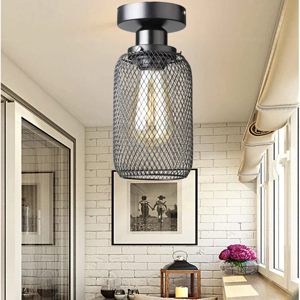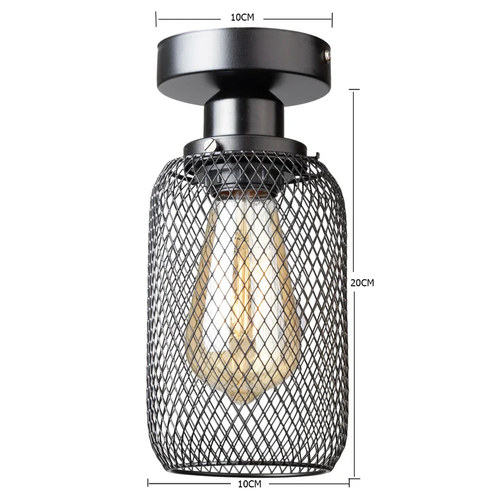 DecorBites™ مصباح سقف مزرعة معدني أسود على شكل قفص، قاعدة E27 للممر والشرفة وغرفة النوم