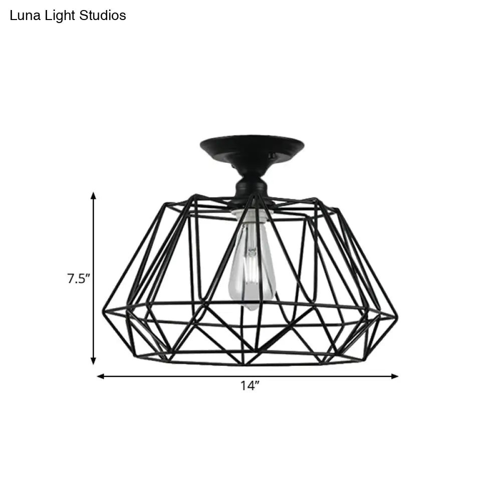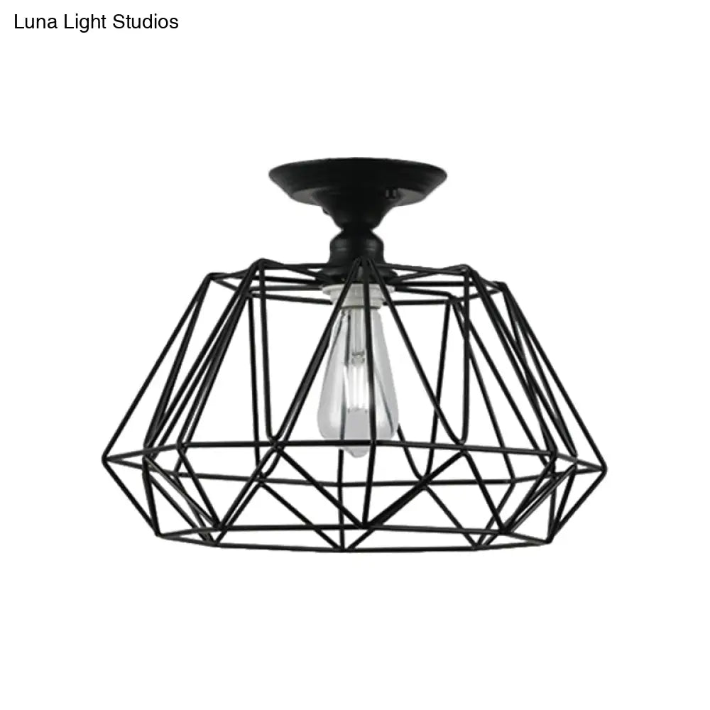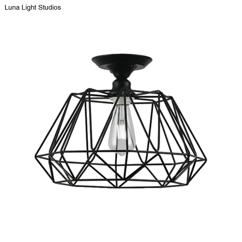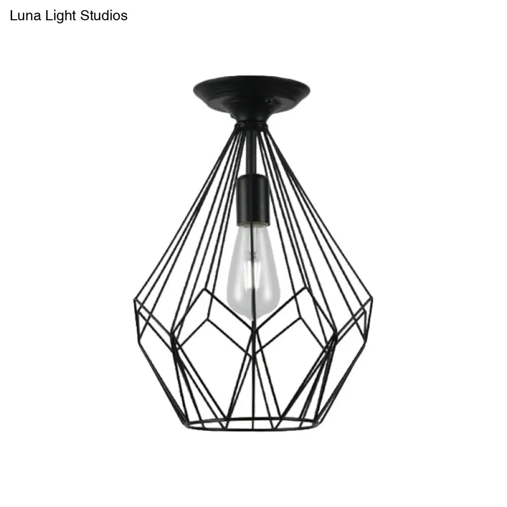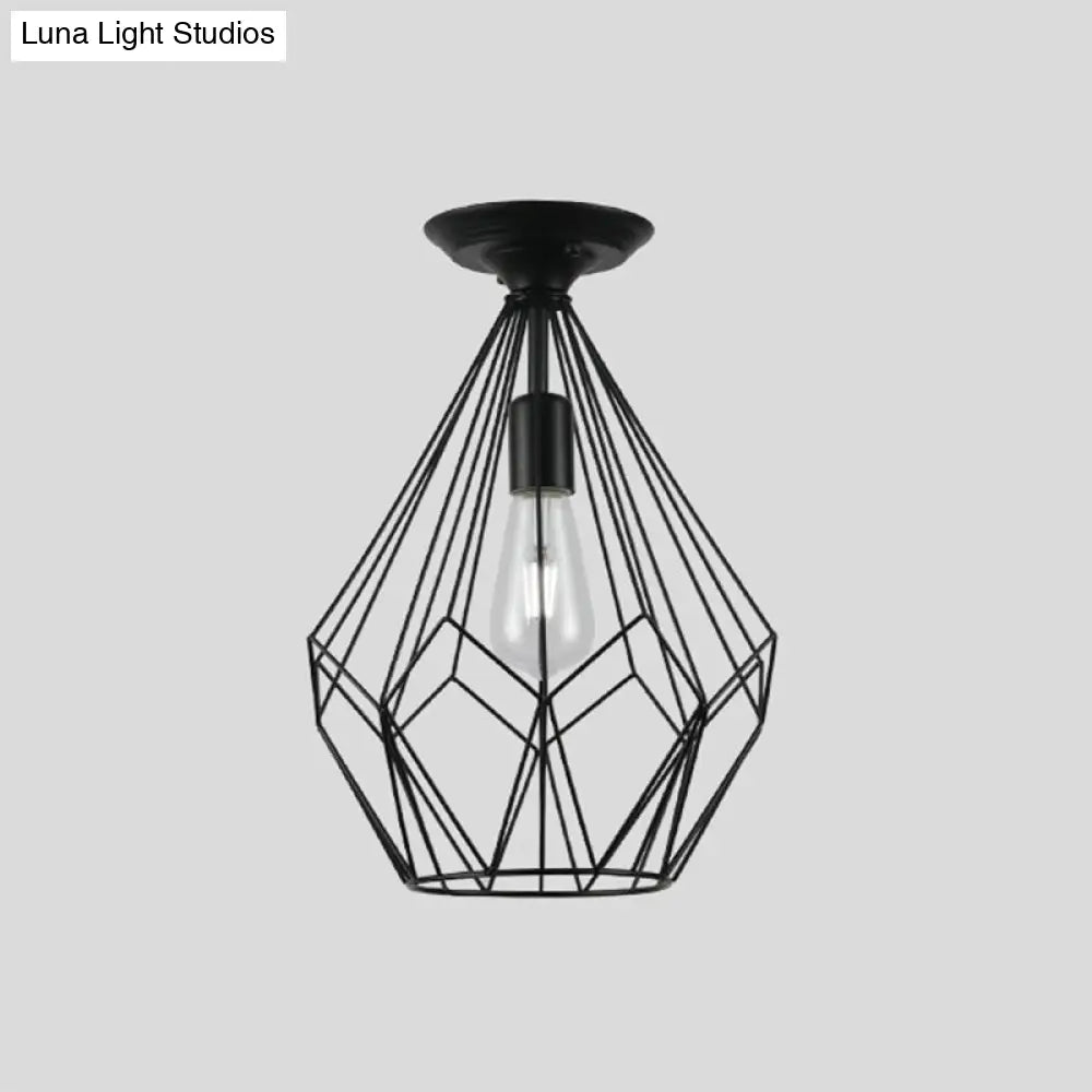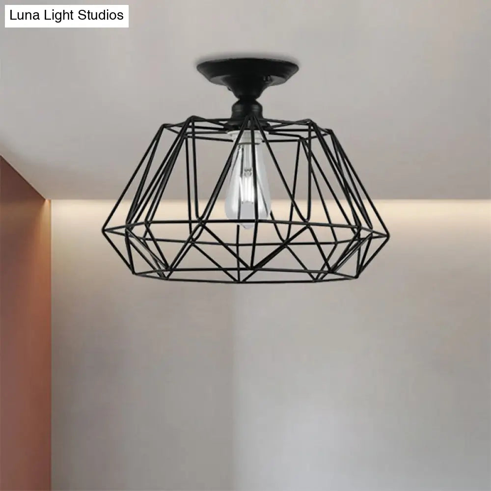 وحدة إضاءة سقف DecorBites™ سوداء معدنية على شكل قفص ماسي للممر - طراز صناعي علوي، قريبة من إضاءة السقف