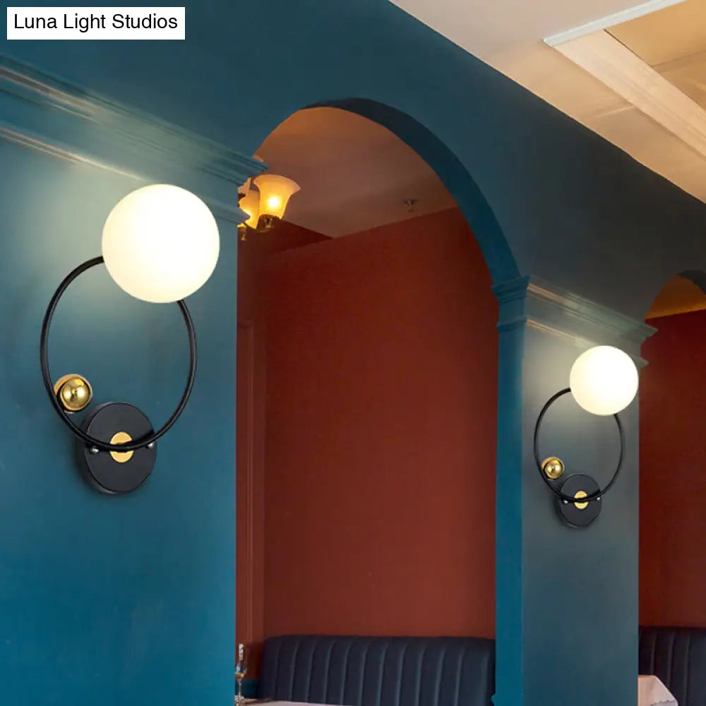 ديكوربايتس™ مصباح حائطي حديث أسود مع غطاء زجاجي أوبال