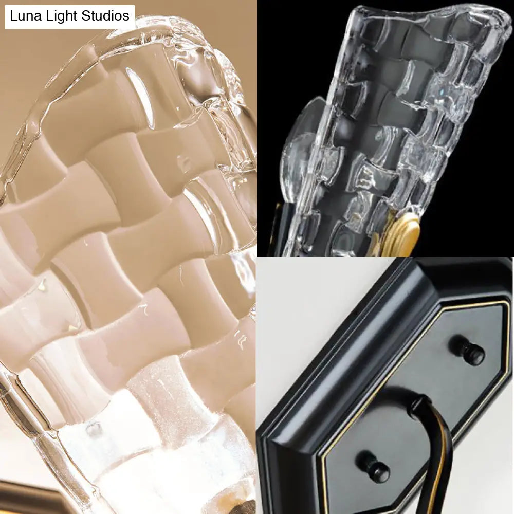 ديكوربايتس™ مصباح حائط حديث أسود بذراع معدني منحني ولوحة كريستالية شفافة