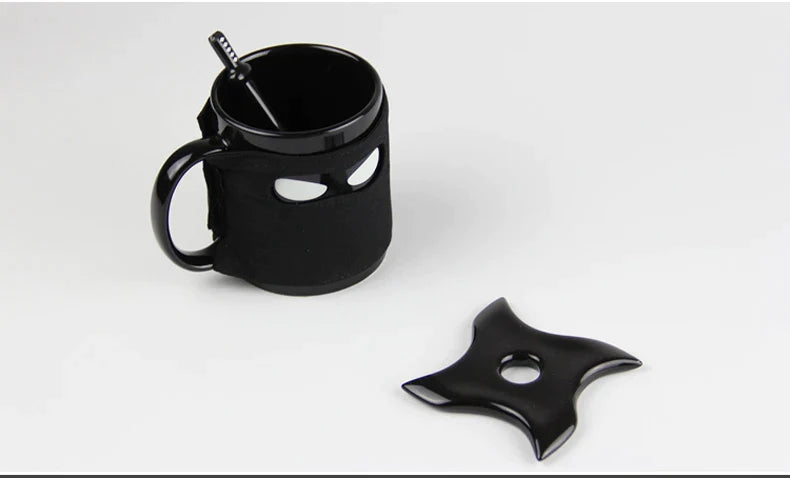 كوب نينجا أسود من ديكوربايتس™، كوب شاي سيراميك فريد، هدية مبتكرة