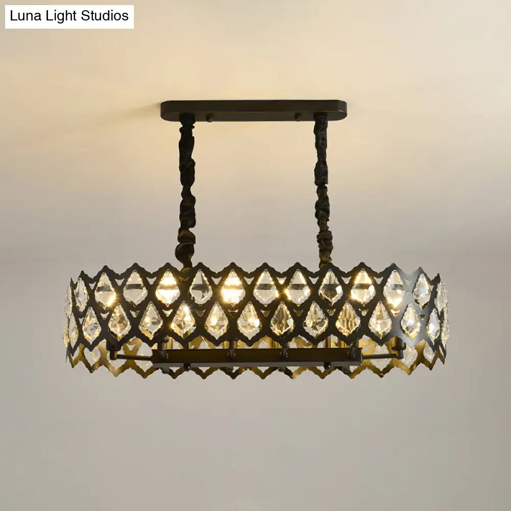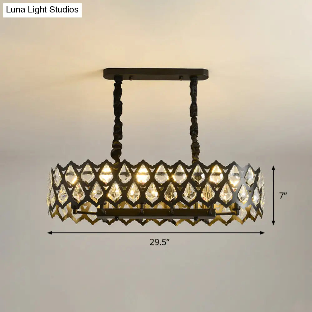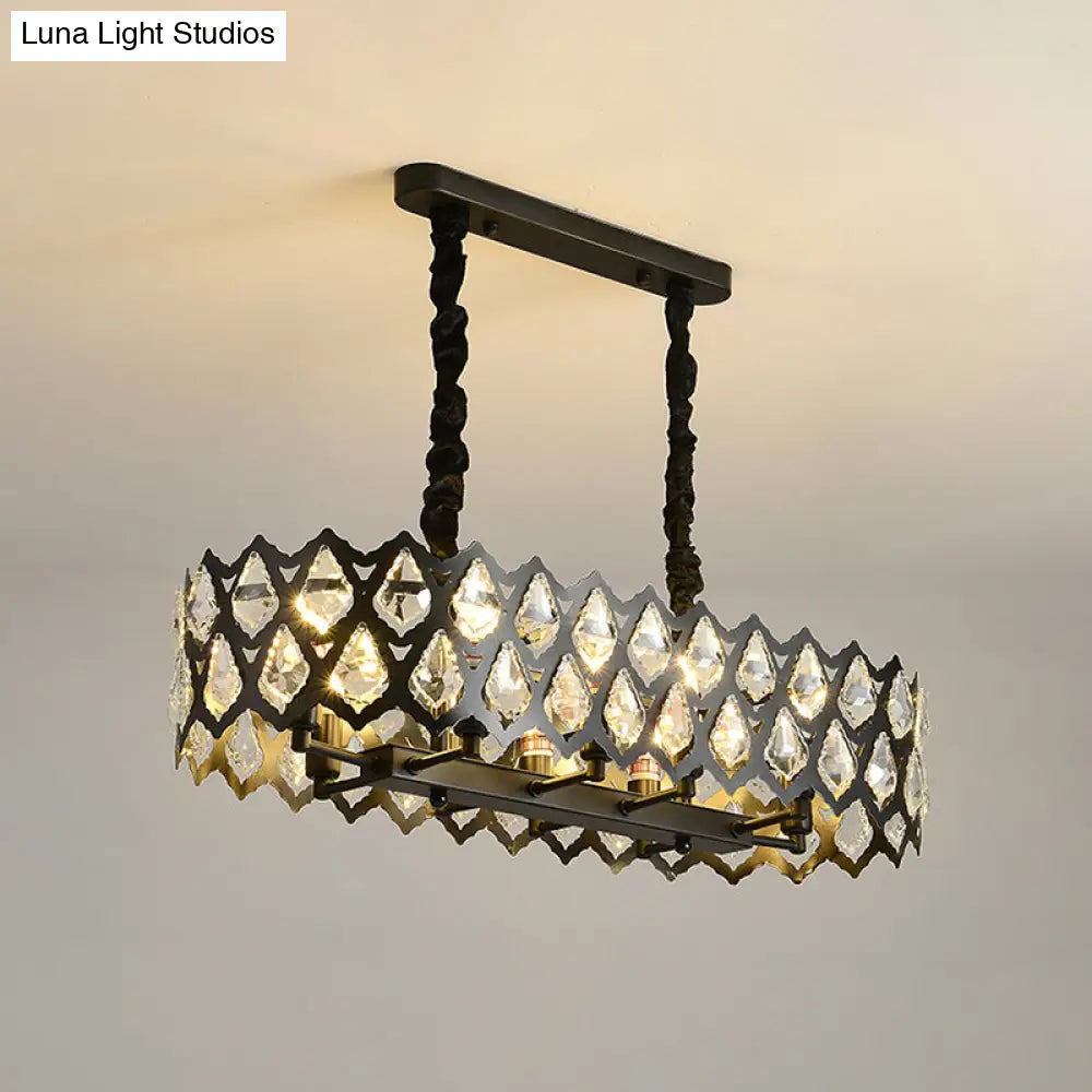 ديكوربايتس™ مصباح معلق على شكل دمعة من الكريستال البيضاوي الأسود - مصباح جزيرة معاصر مع 10/14 لمبة - عرض 29.5 بوصة/37.5 بوصة