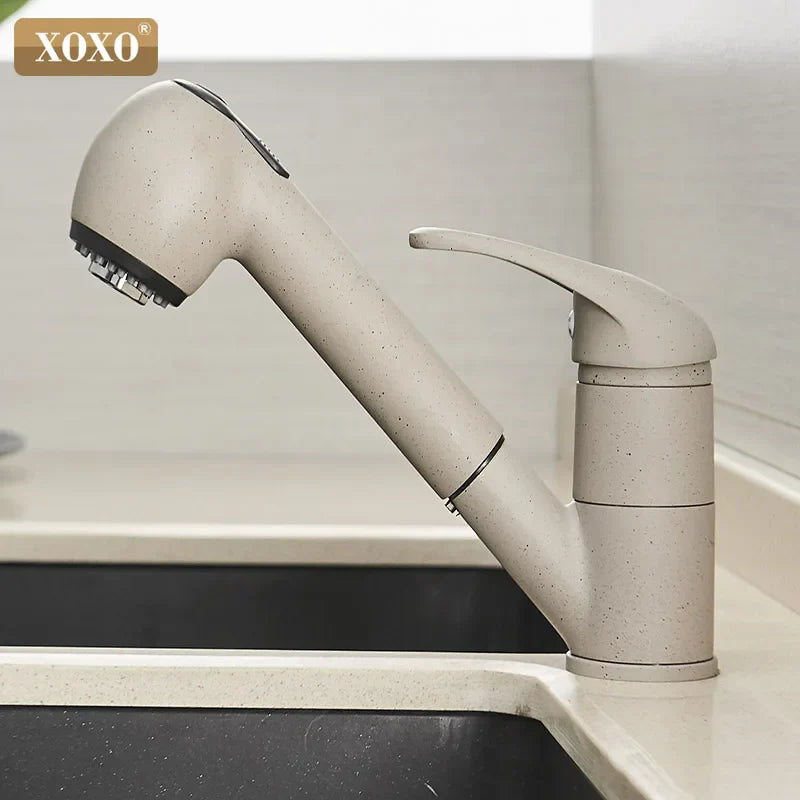 يتميز صنبور المطبخ الأسود المصقول من ديكوربايتس بتصميم بمقبض واحد، مما يُسهّل التحكم في درجة حرارة المياه وتدفقها بدقة. يضمن قلب الصمام الخزفي المتانة والموثوقية، بينما يُضفي نوع الرش القابل للسحب مزيدًا من الراحة لغسل الأطباق والأواني.