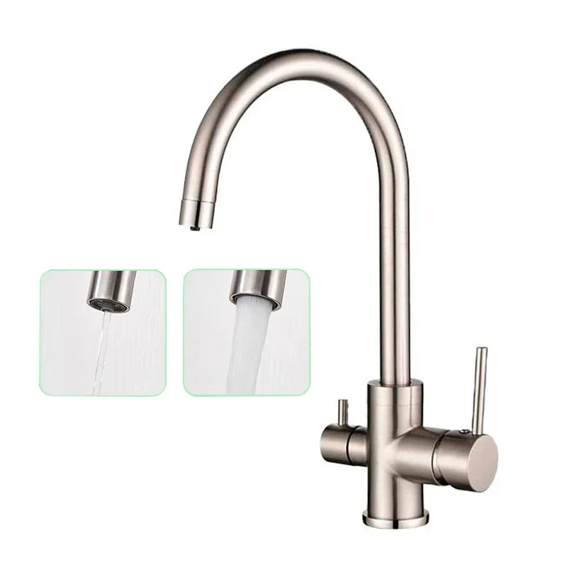 يتيح لك المقبضان المزدوجان التحكم بسهولة في درجة حرارة الماء، سواءً كنتَ بحاجة إلى ماء ساخن أو بارد للطهي أو الشرب. يضمن التحكم في الصمام تشغيلًا سلسًا ودقيقًا، بينما يضمن قلب الصمام الخزفي أداءً طويل الأمد.