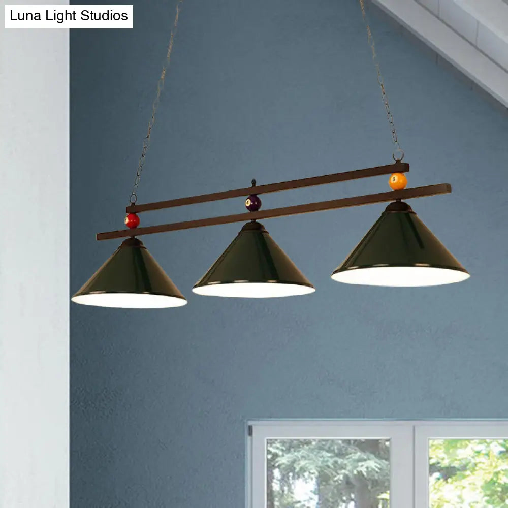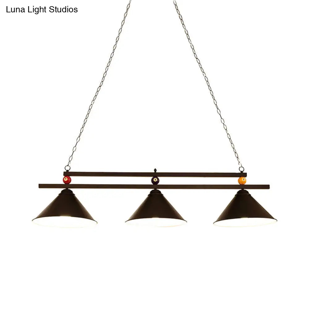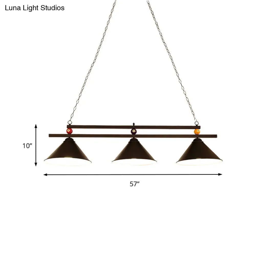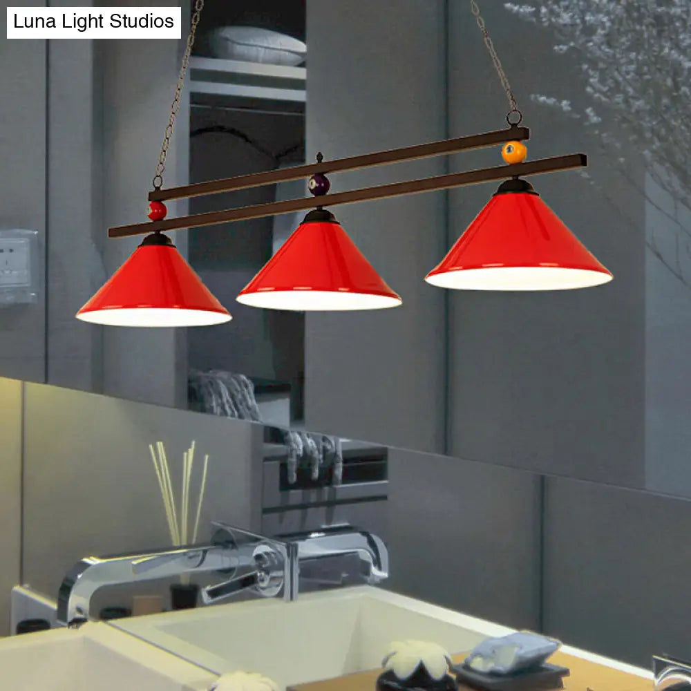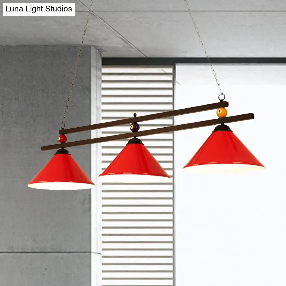ديكوربايتس™ مصباح سقف مخروطي صناعي أسود/أحمر بثلاثة رؤوس معدنية وديكور كرة بلياردو
