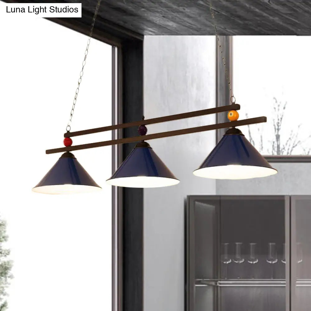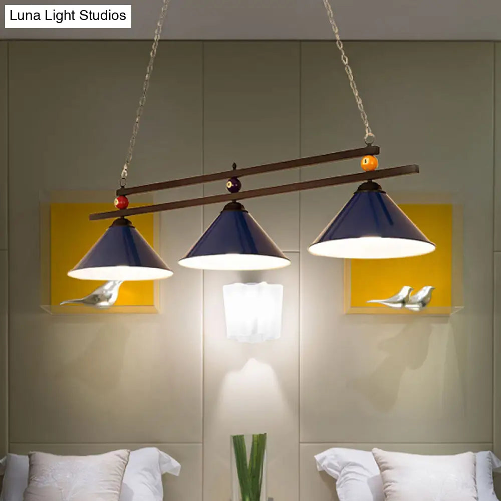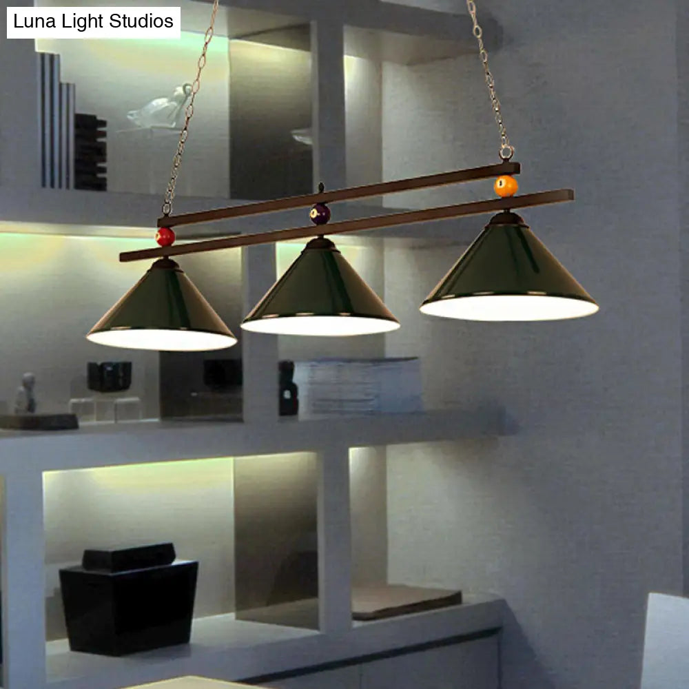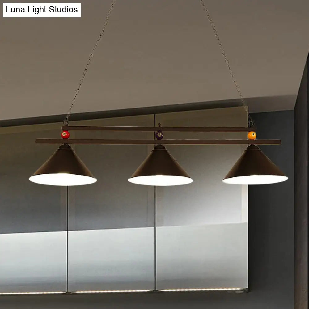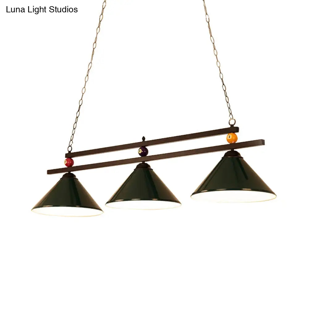 ديكوربايتس™ مصباح سقف مخروطي صناعي أسود/أحمر بثلاثة رؤوس معدنية وديكور كرة بلياردو