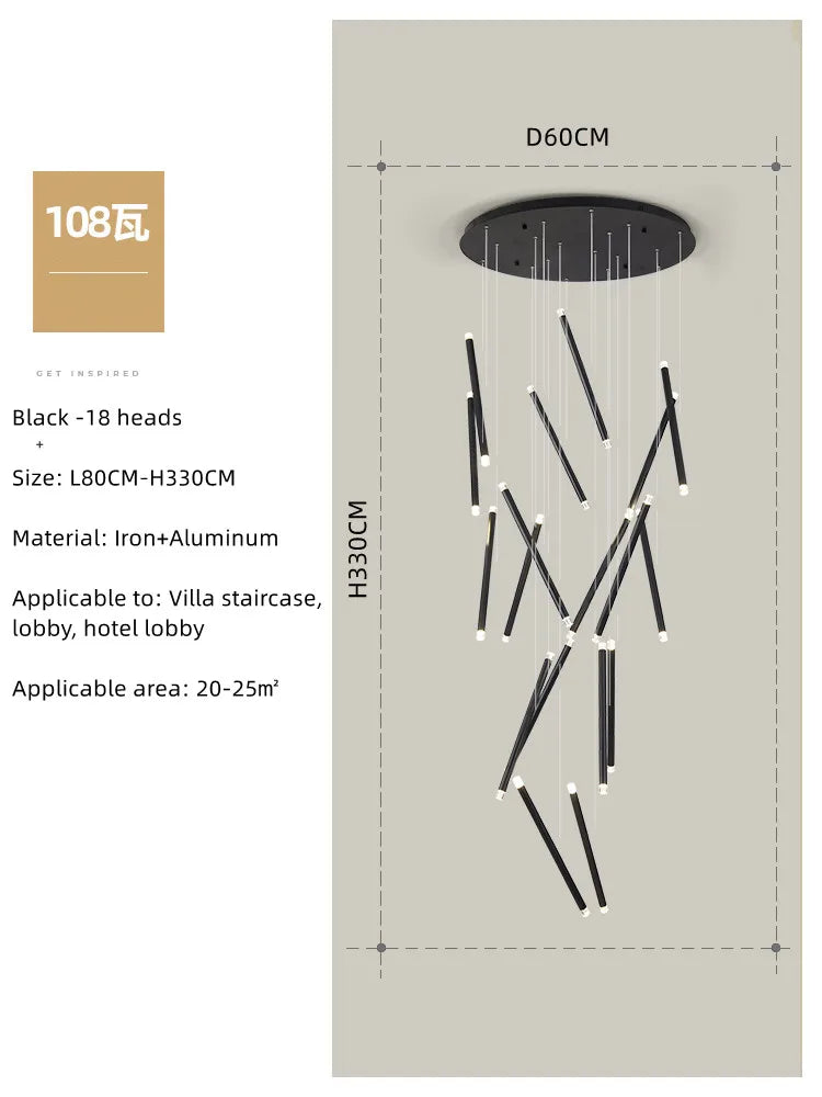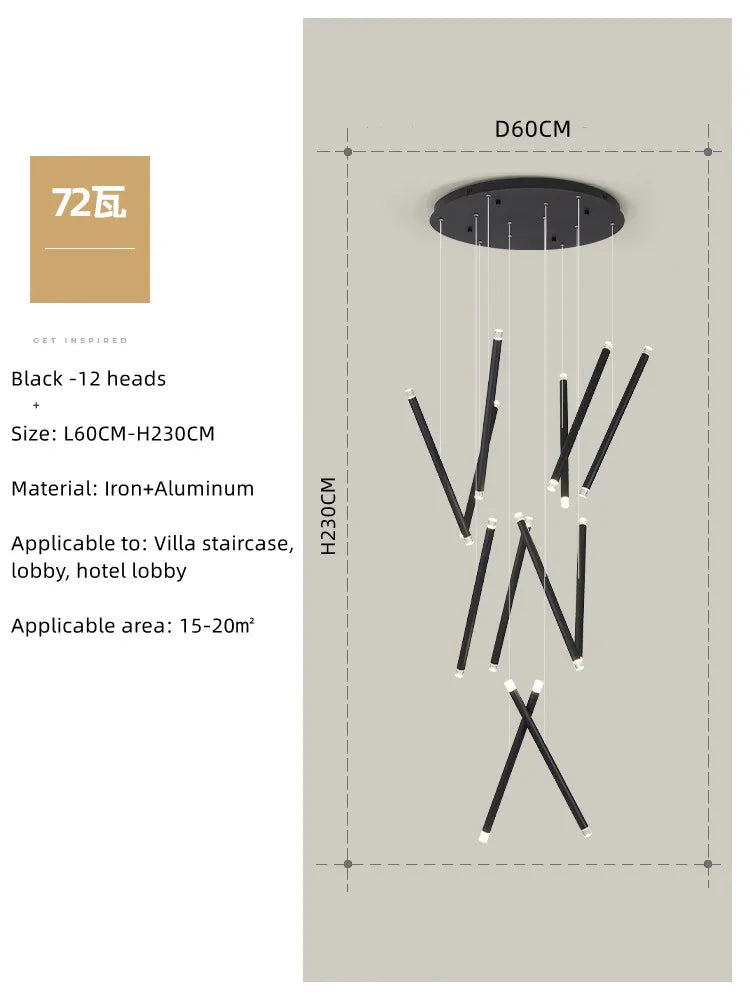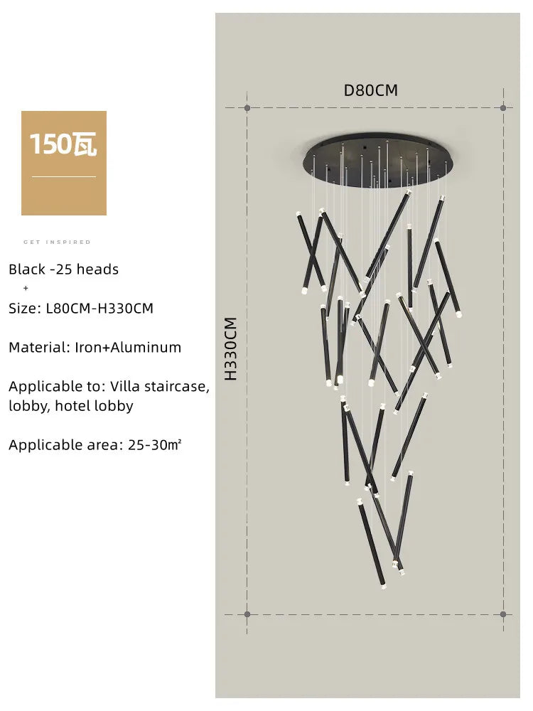 ثريا ديكوربايتس™ LED دائرية سوداء اللون لدرج دوبلكس علوي - ديكور إضاءة داخلي
