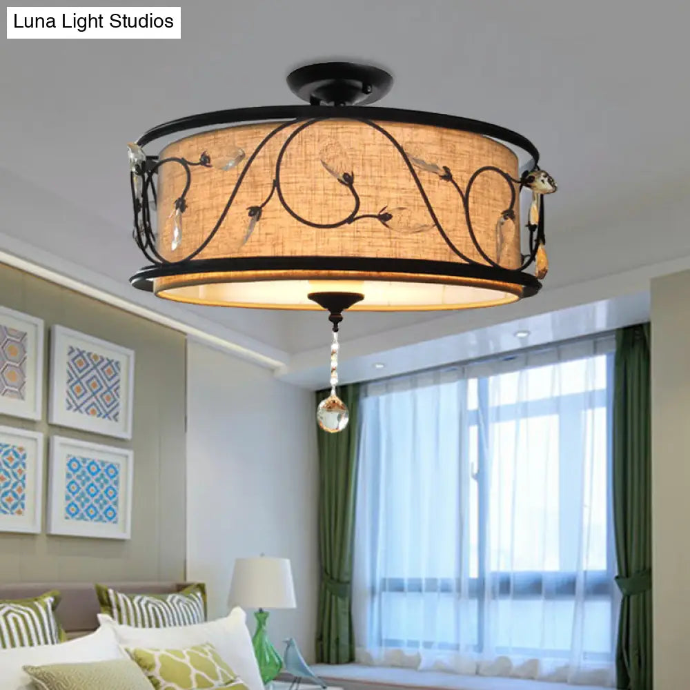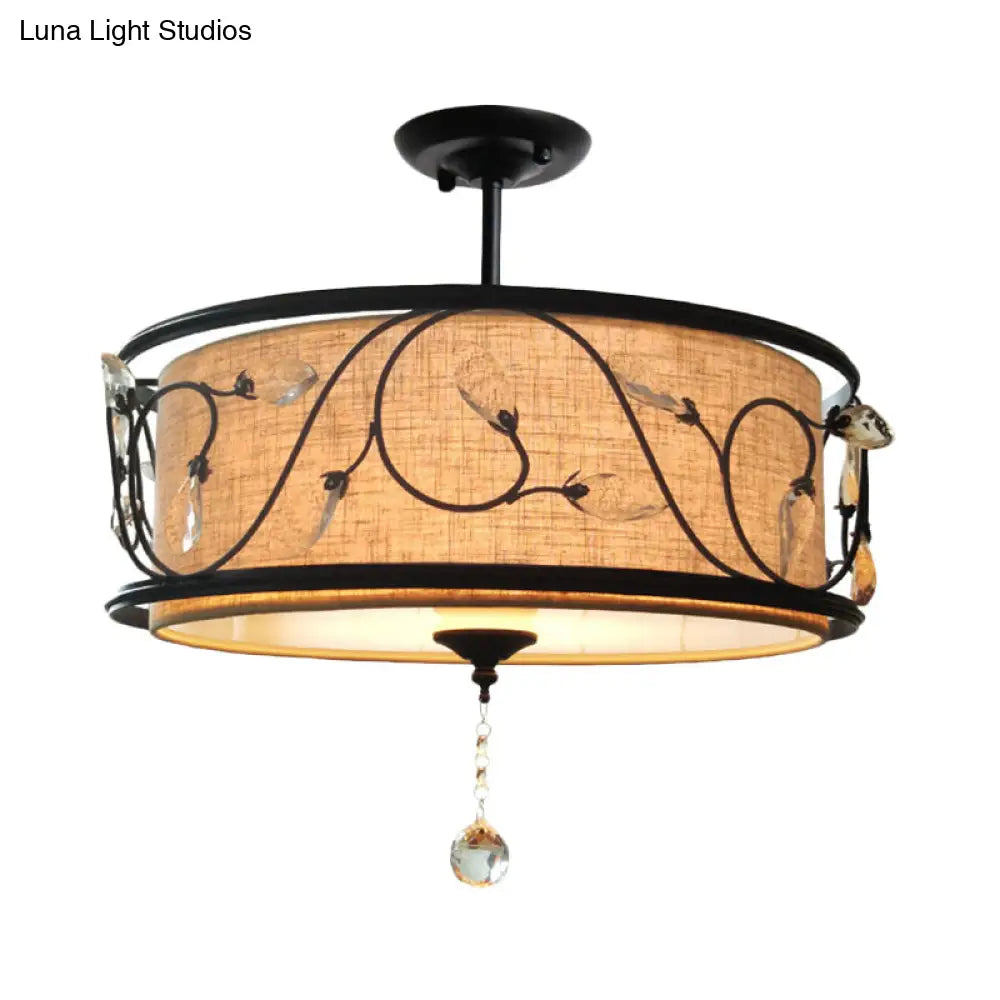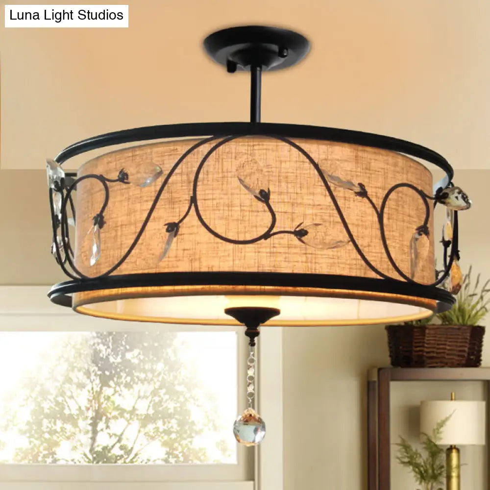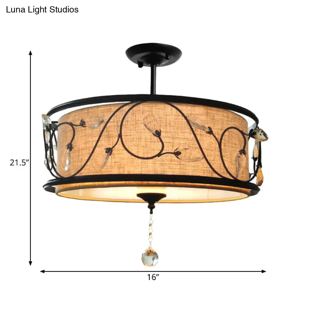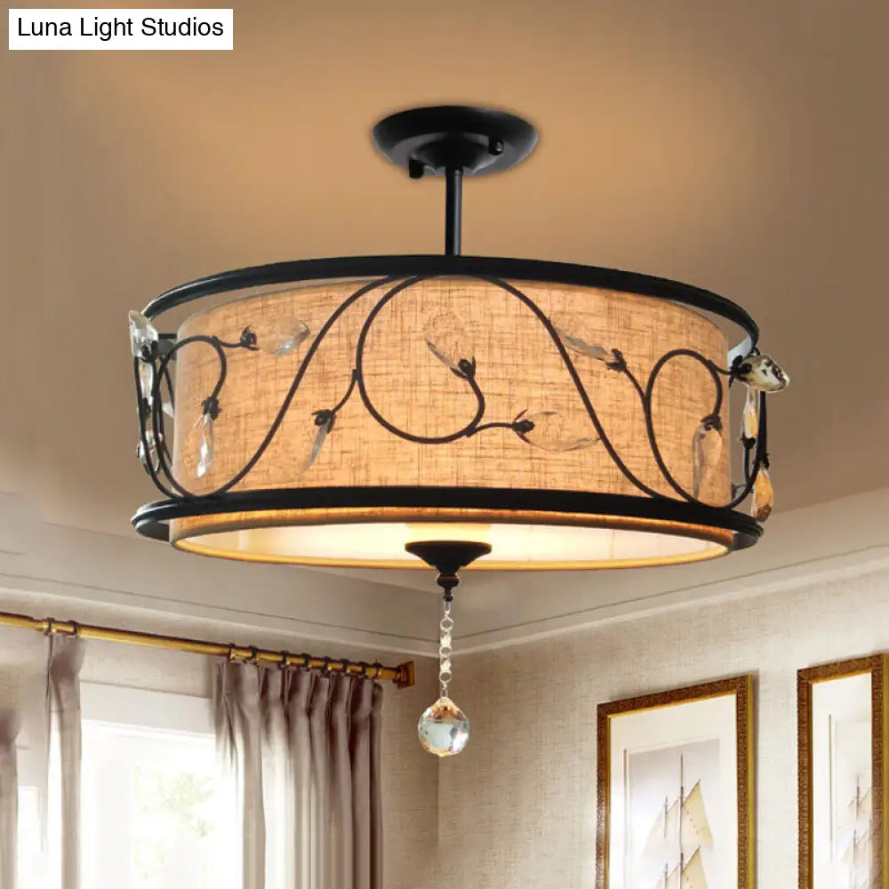 مصباح سقف DecorBites™ أسود ريفي شبه مدمج مع ستارة كريستالية - 4 مصابيح، قطر 14 بوصة/21.5 بوصة - غطاء من القماش