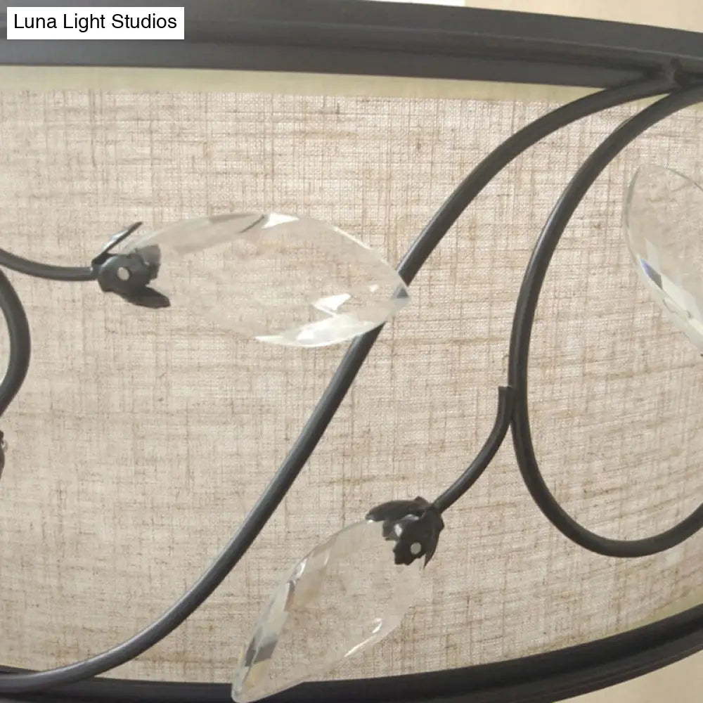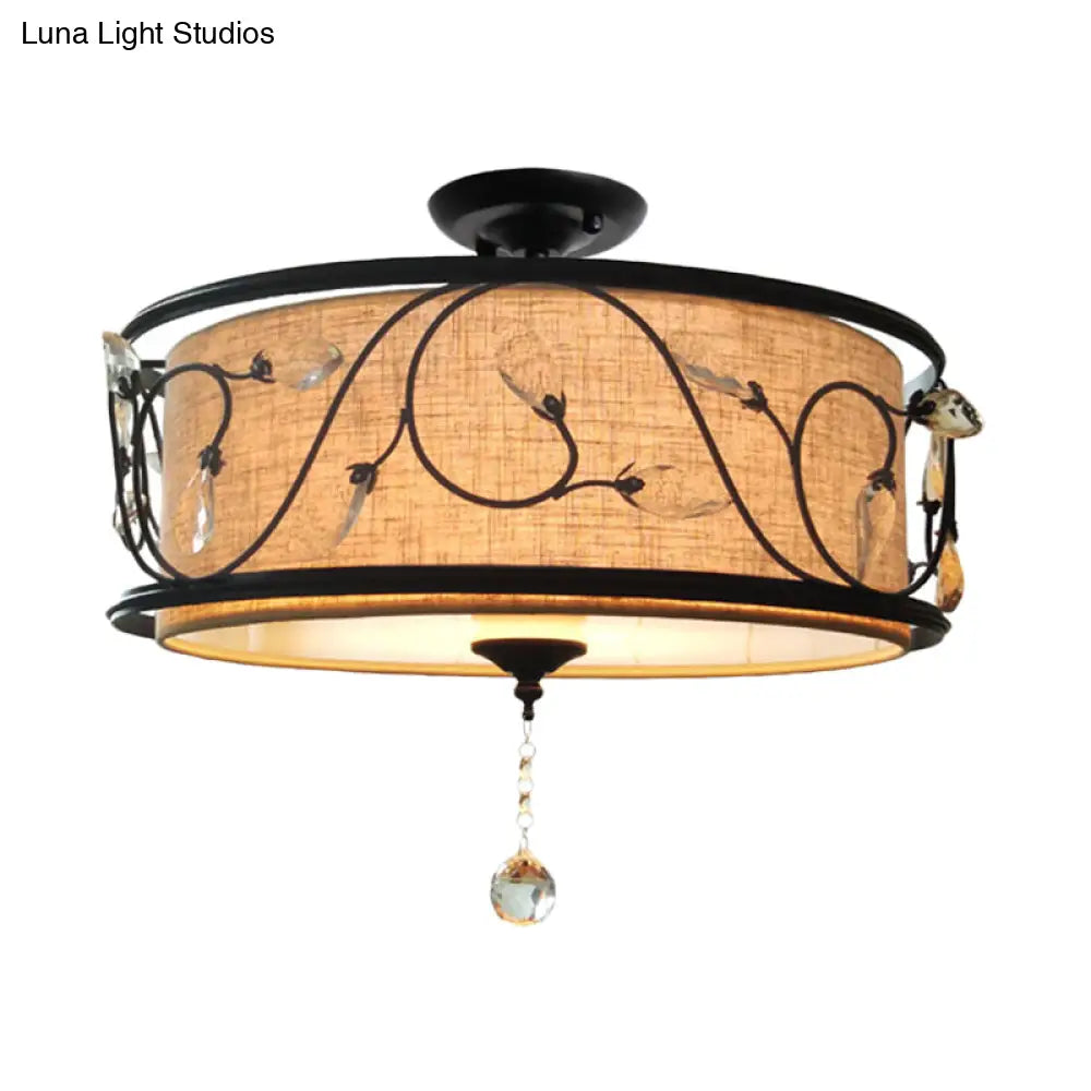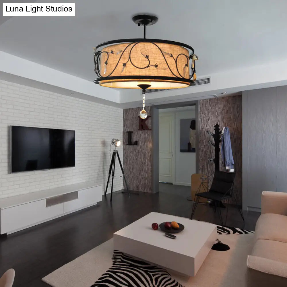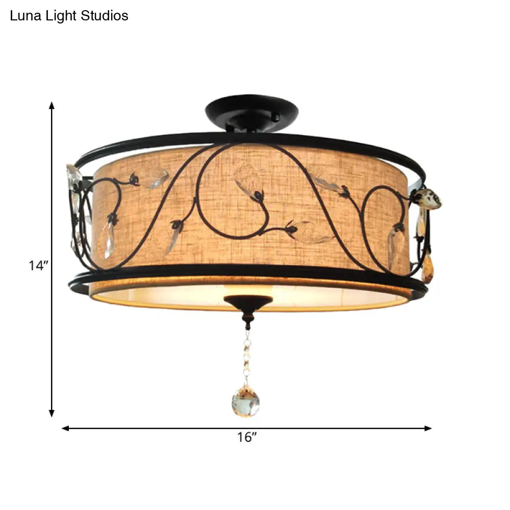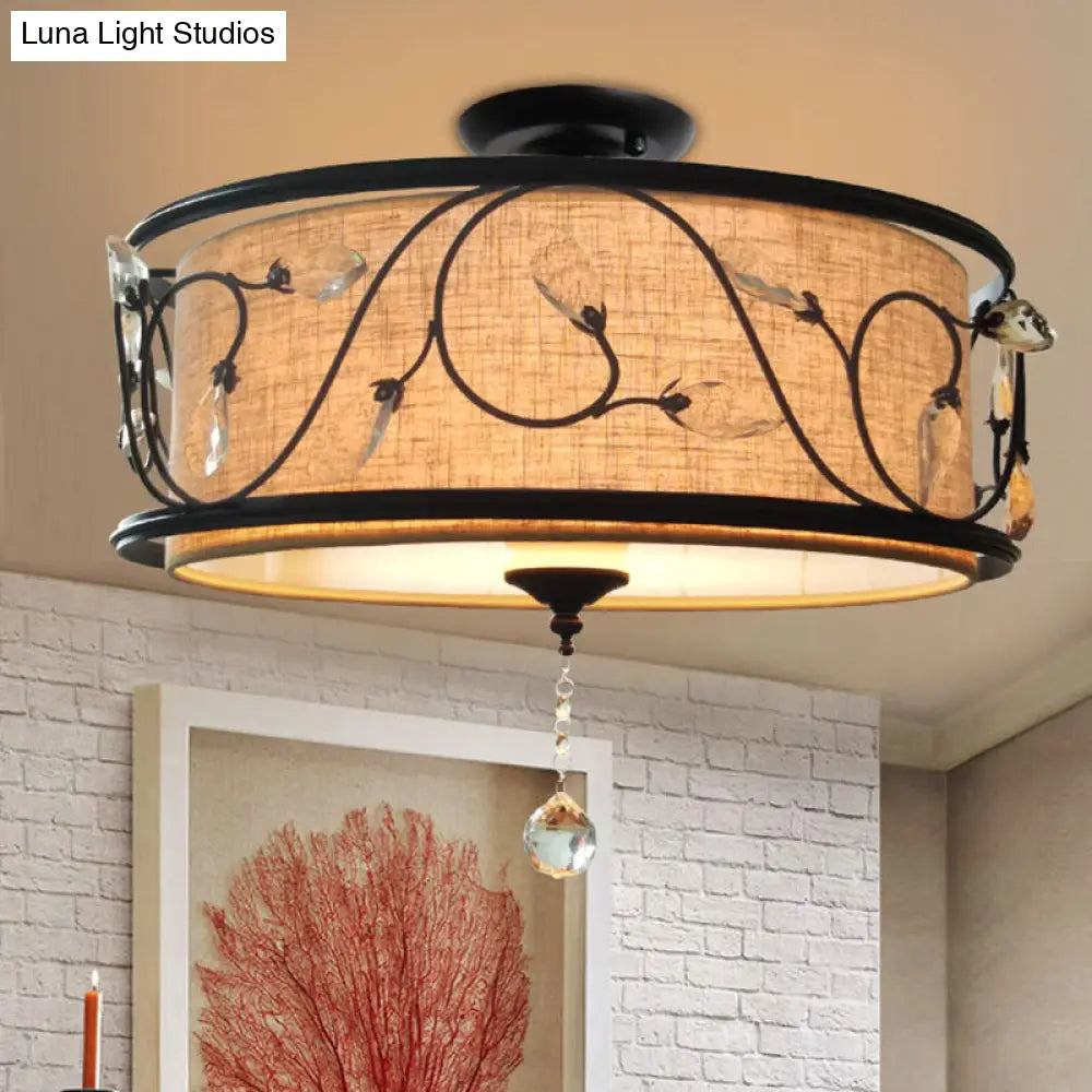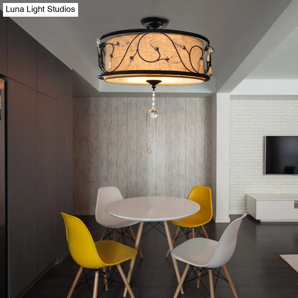 مصباح سقف DecorBites™ أسود ريفي شبه مدمج مع ستارة كريستالية - 4 مصابيح، قطر 14 بوصة/21.5 بوصة - غطاء من القماش
