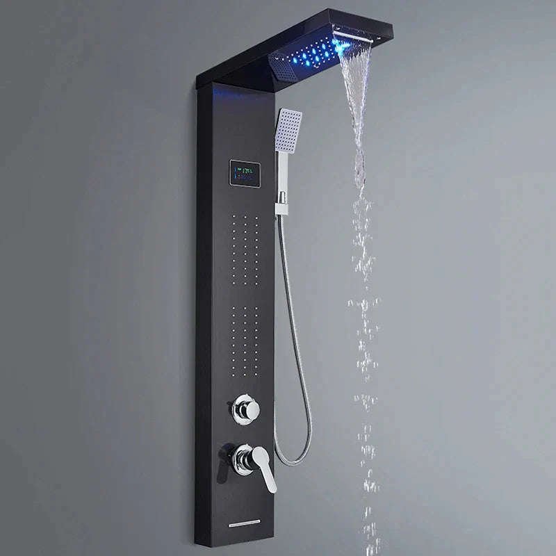 صنبور دش أسود مثبت على الحائط من DecorBites™ مع شلال مطري وخلاط ساخن وبارد