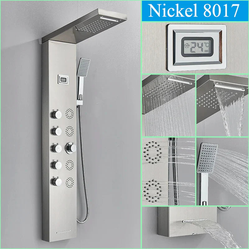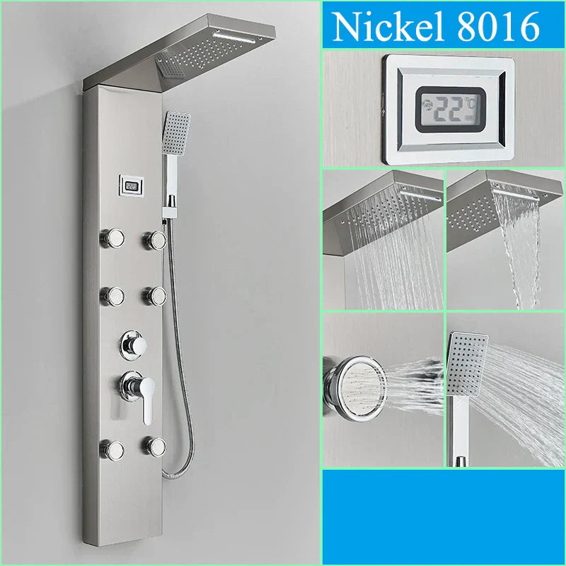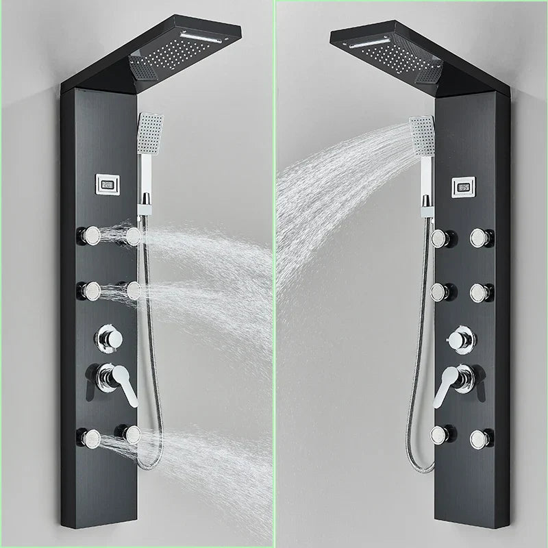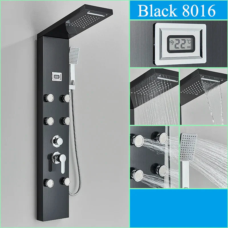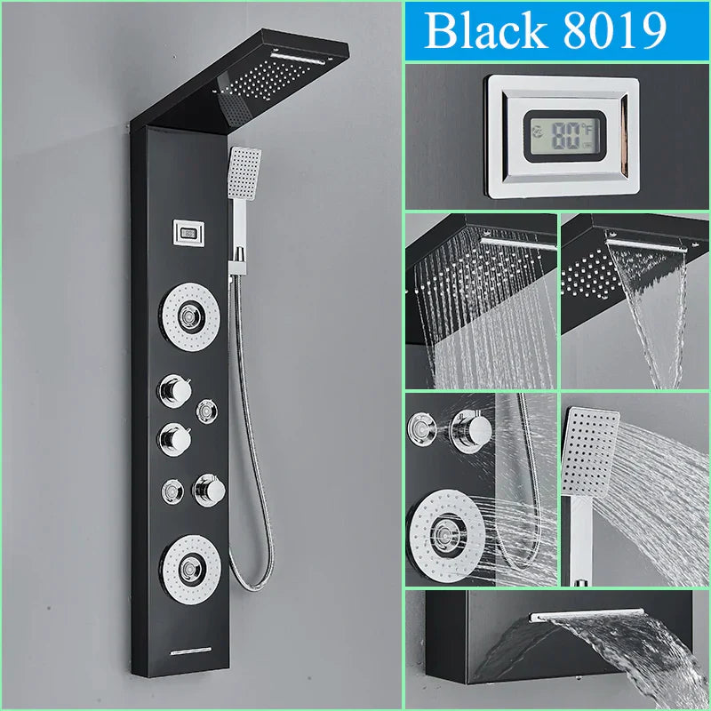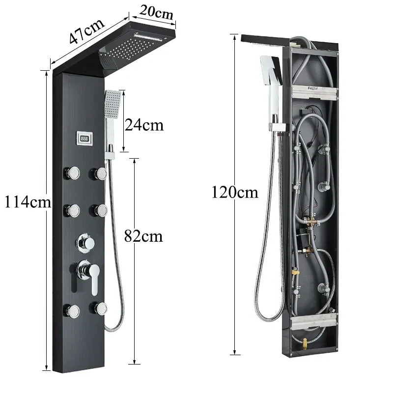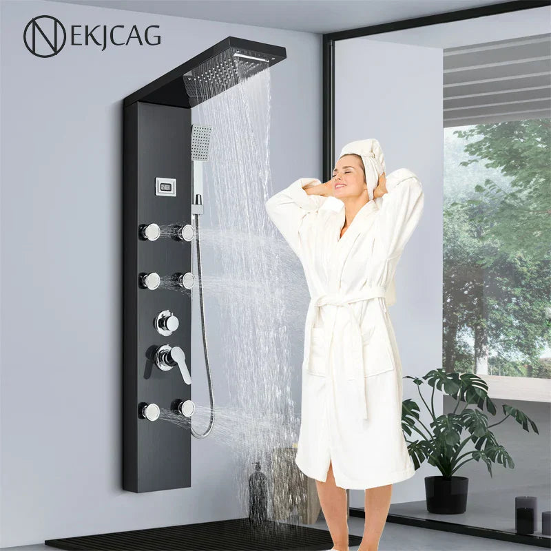 حسّن تجربة استحمامك مع لوحة دش ديكوربايتس السوداء، واستمتع بفخامة دش المطر والشلال في راحة منزلك. بفضل جودتها العالية وتصميمها الأنيق، تُعد لوحة الدش هذه قطعة أساسية في أي حمام عصري. تألق اليوم مع لوحة دش ديكوربايتس السوداء.