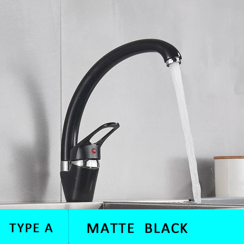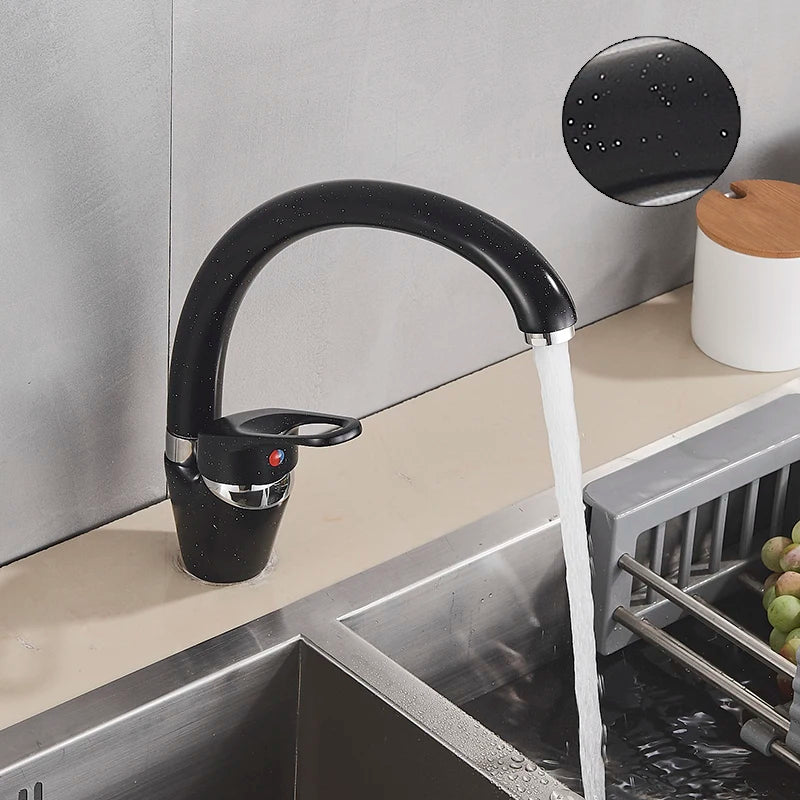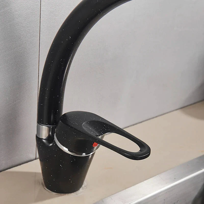 صنبور مطبخ أسود بمقبض واحد من DecorBites™ - خلاط مياه ساخنة وباردة