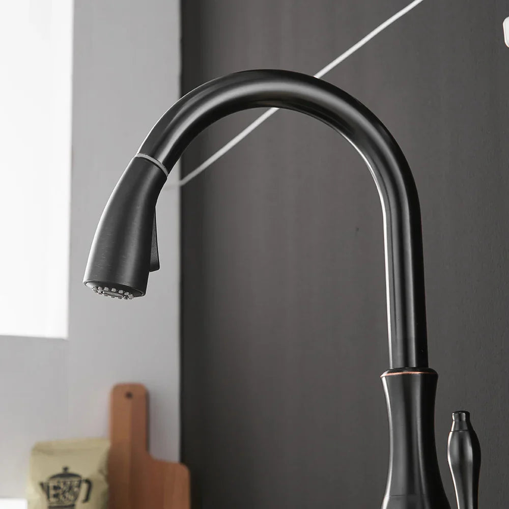 صنبور مطبخ أسود بمقبض واحد قابل للسحب من DecorBites™ - صنبور خلاط مياه دوار بزاوية 360 درجة