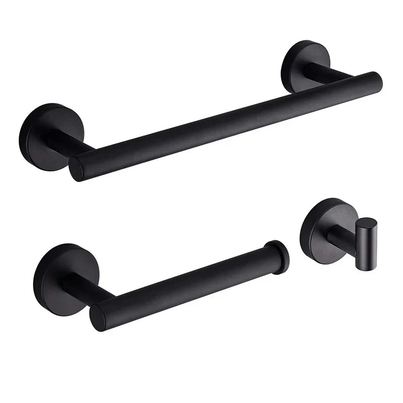 مجموعة حمام DecorBites™ المصنوعة من الفولاذ المقاوم للصدأ باللون الأسود: خطاف رداء، سكة مناشف، رف، حامل مناديل