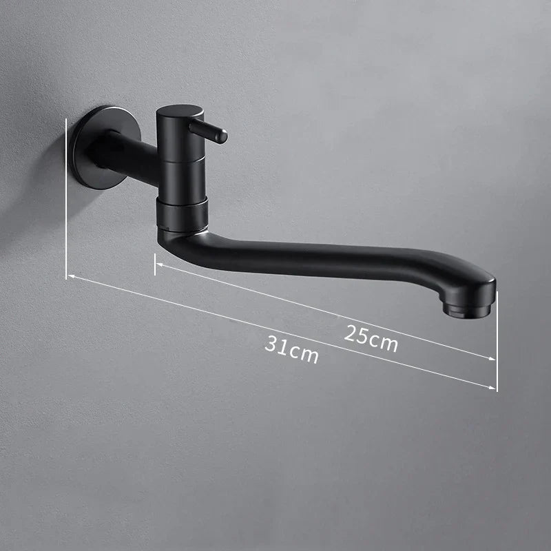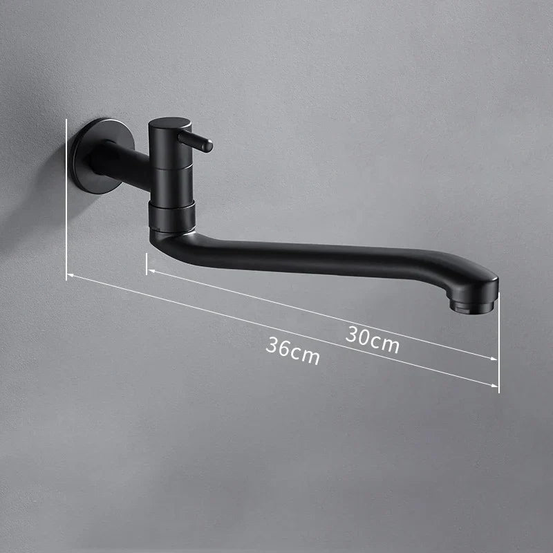 صنبور مطبخ دوار من الفولاذ المقاوم للصدأ باللون الأسود من DecorBites™، يدور 360 درجة، مثبت على الحائط
