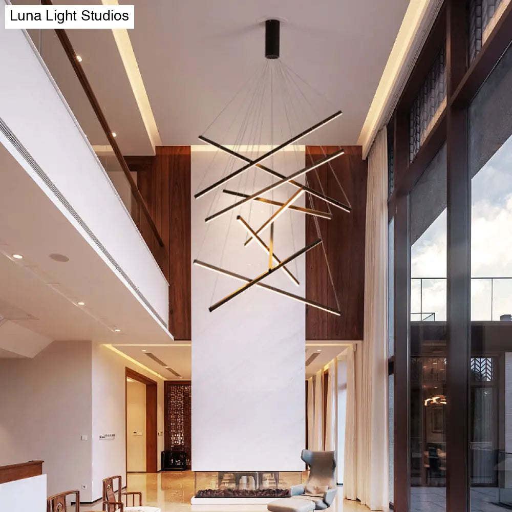 ثريا DecorBites™ LED ذات العصي السوداء بتصميم حديث وبسيط من المعدن، مصباح معلق للردهة